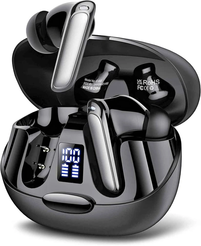 10EV68 Wireless Earbuds Clear sound + good bass Comes with charging case LED battery display Touch control Works with all phones Great for gym, running, or daily use Brand new & never used. ( Open Box to take pictures)