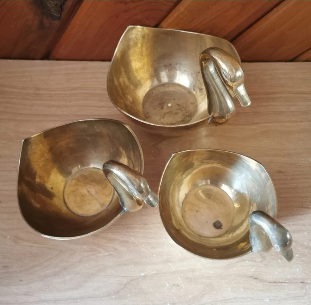 Gorgeous Vintage Solid Brass Nesting Swan Bowls.