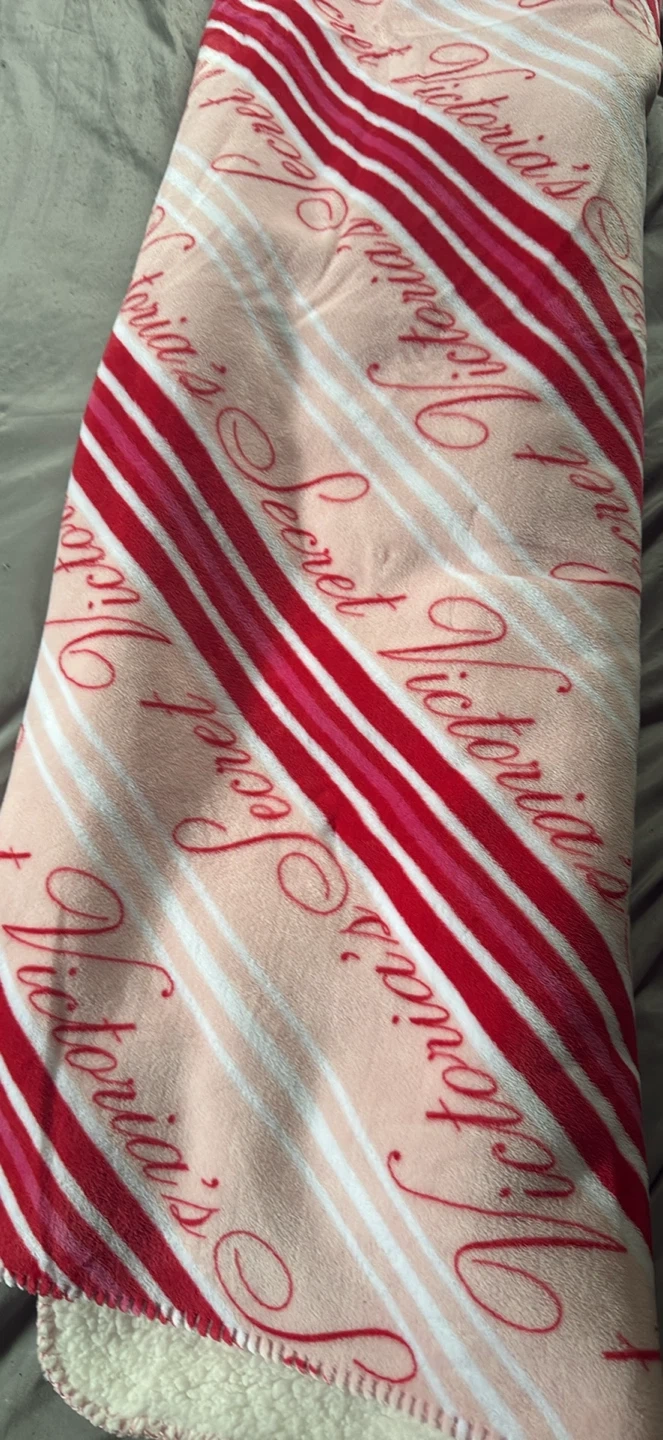 Snuggle up with this super soft Victoria's Secret cozy plush blanket! It measures 50 inches by 60 inches (127 cm x 152 cm). The blanket features a cute striped pattern with the Victoria's Secret logo. Perfect for adding a touch of warmth and style to your home!