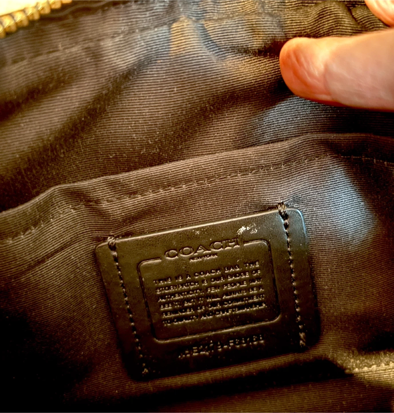 Selling a top quality Coach JES shoulder Bag - in a lovely brown and black colour. Can be worn crossbody. Measurements: Length 10”, Breadth 7”, Width 3”. It's in great condition and perfect for special occasions or to show class! The bag features the classic Coach logo pattern. For sale in Brampton near Fletchers Parkette