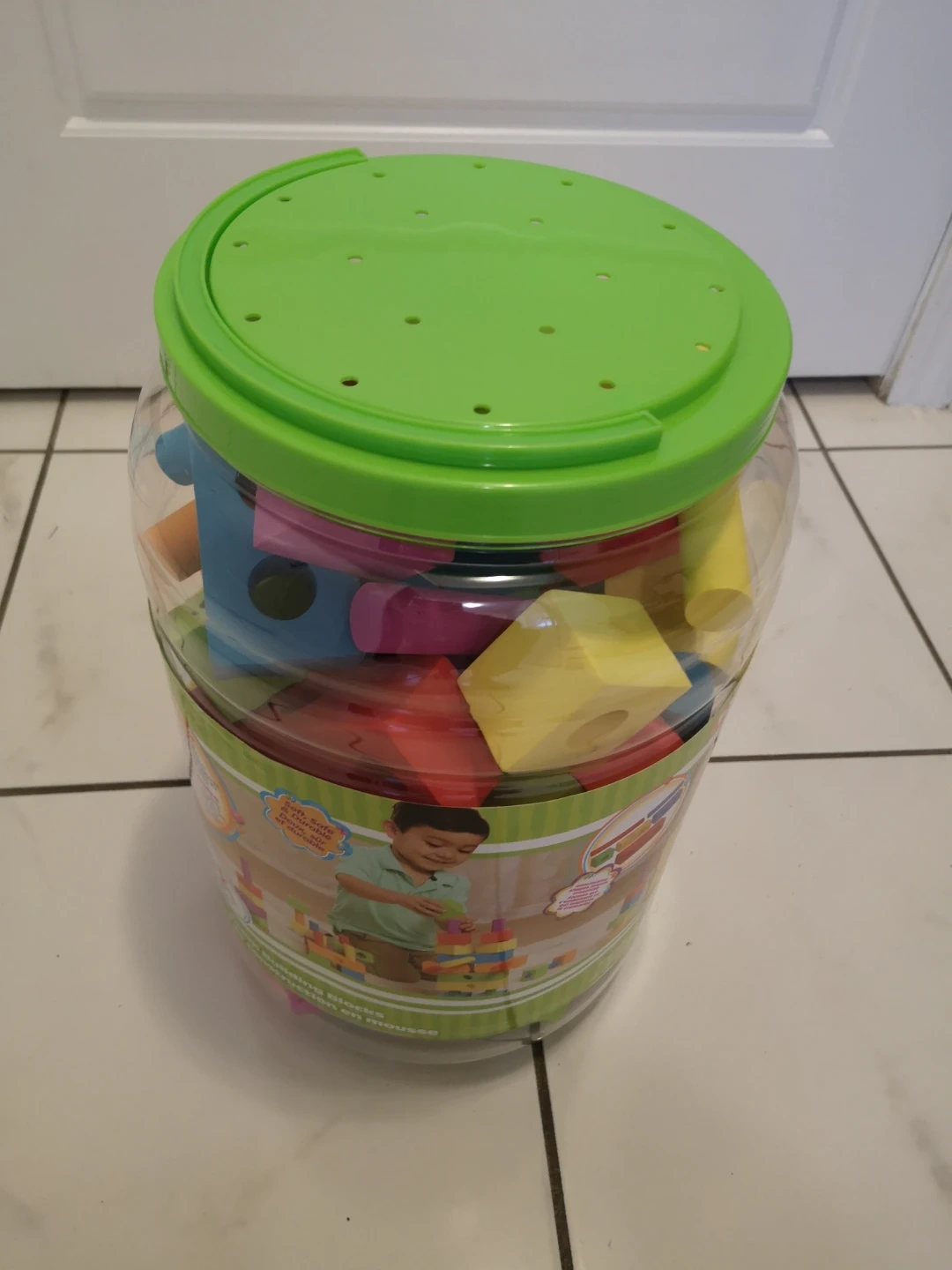 Foam building blocks by Spark Create Imagine. Includes 100 pieces. Recommended for ages 3+