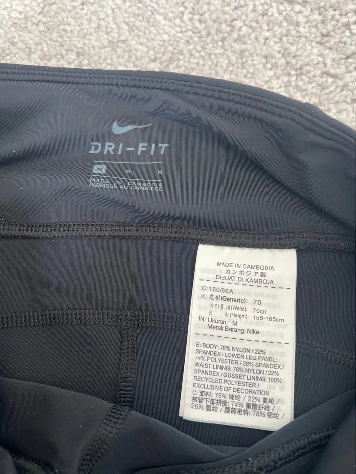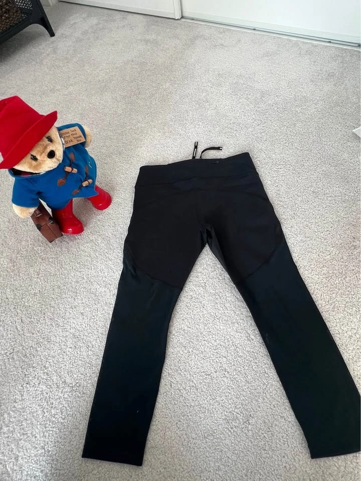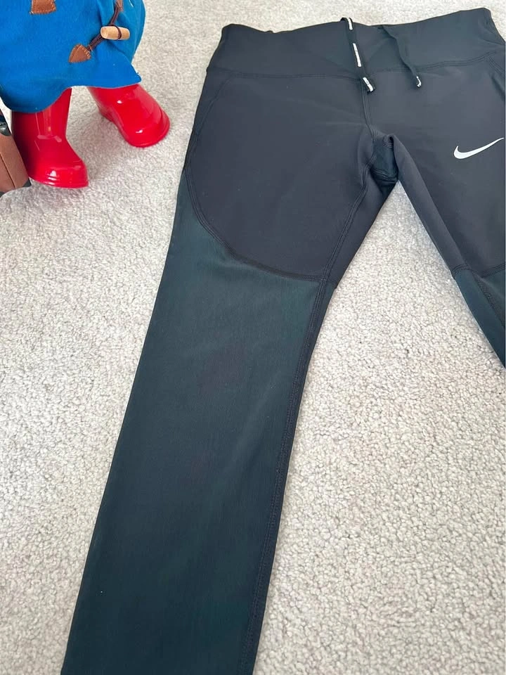Gently used Nike yoga leggings, worn only twice. Excellent condition. Soft, stretchy high-waisted design with semi-sheer mesh panels on the lower legs — breathable and flattering. Perfect for yoga, gym, or everyday activewear.