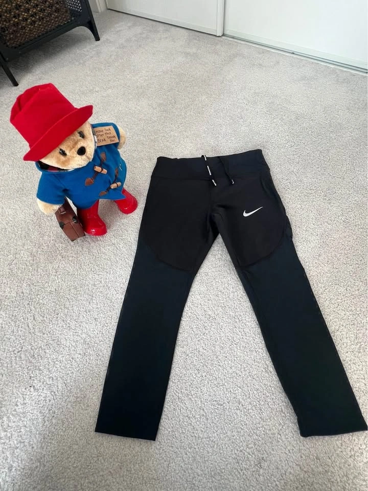 Gently used Nike yoga leggings, worn only twice. Excellent condition. Soft, stretchy high-waisted design with semi-sheer mesh panels on the lower legs — breathable and flattering. Perfect for yoga, gym, or everyday activewear.
