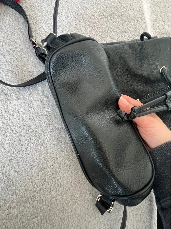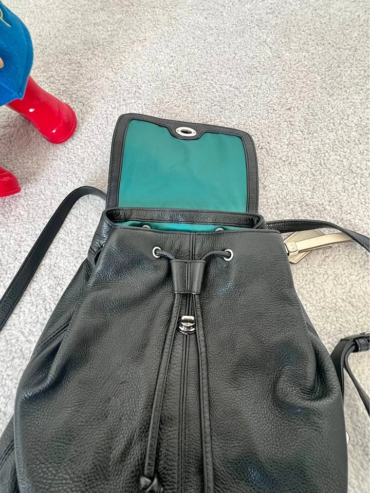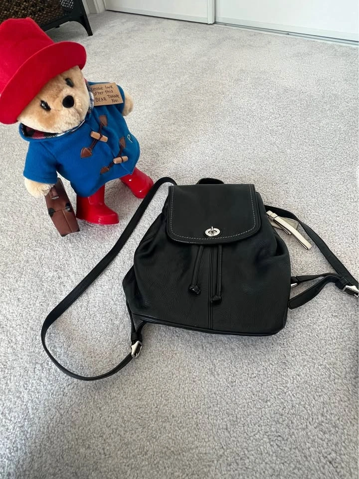 Classic and elegant black genuine leather backpack from Coach. Soft and durable leather with a smooth finish. Perfect size for daily use — fits phone, wallet, keys, and small essentials. In excellent pre-owned condition: clean inside, shiny hardware, and well-maintained leather.