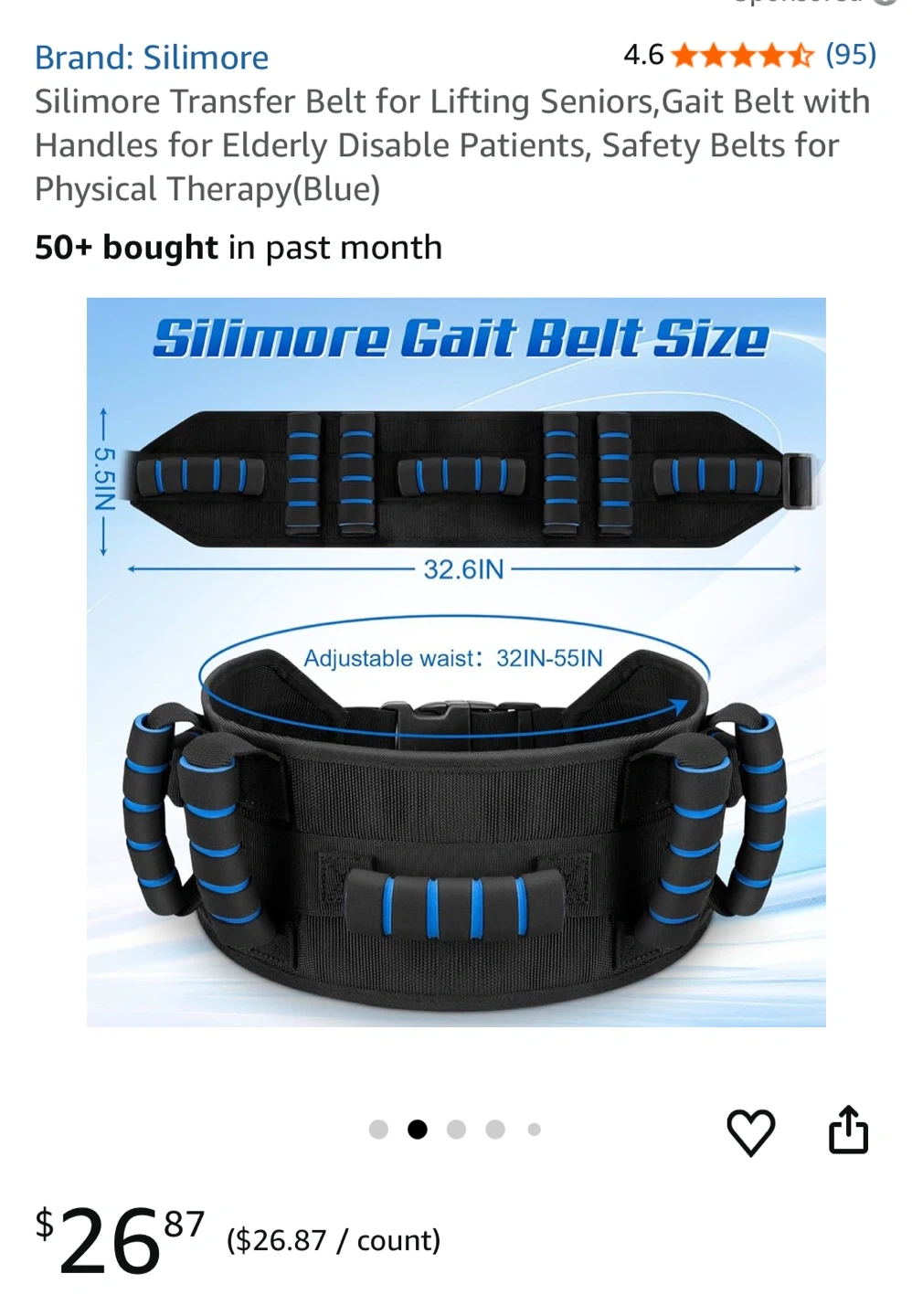 Silimore Gait Belt for helping seniors move from one spot to another.