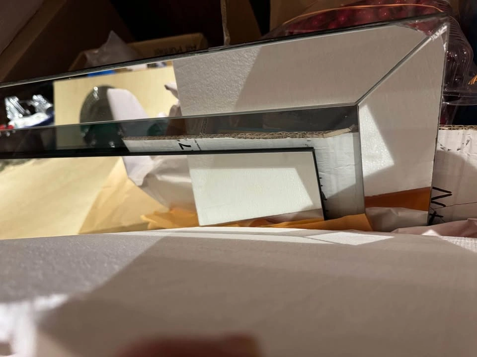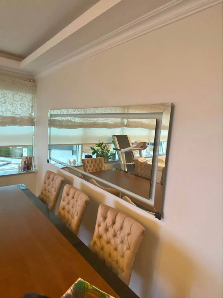Special design sleek wall mirror with an LED board (detached for easy transport). LED lights come with a remote control and were tested in Europe — they worked perfectly there. Minor corner cracks — can be hidden with edge protectors or trimmed by a glass shop. Outer frame size: 205 × 80 cm. Inner mirror size: 185 × 60 cm. Price: $150 OBO