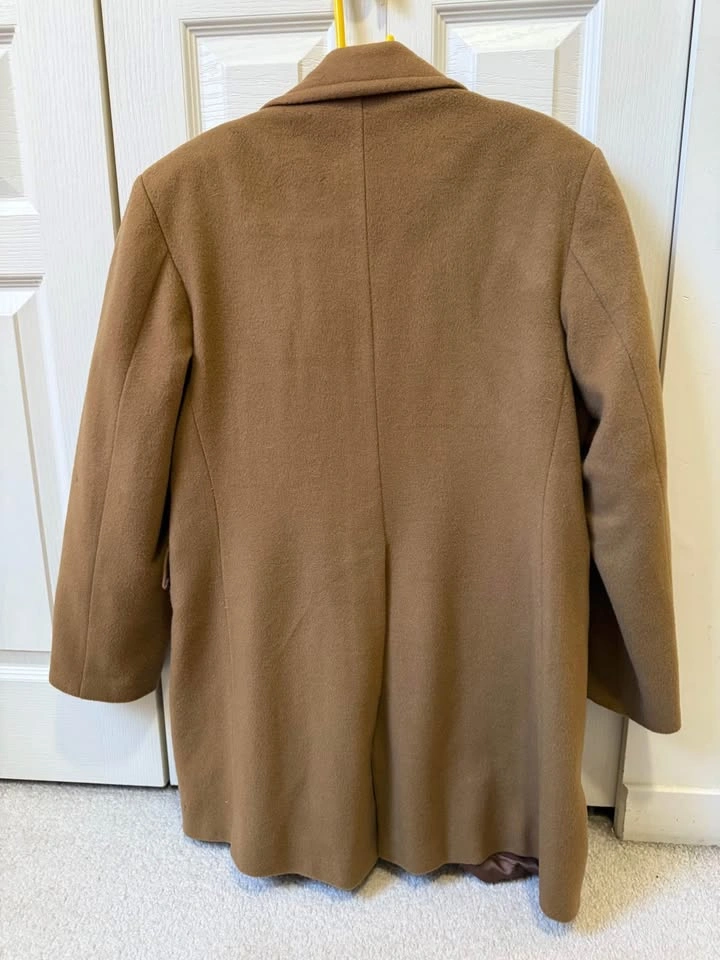15Stylish mid-weight wool blend coat. Custom tailored with a notched lapel collar and double front pockets. Size L/XL Cash or EMT only. Pickup in Richmond.