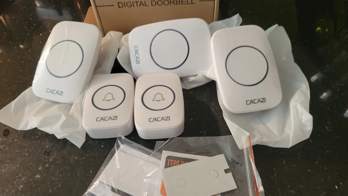 85Selling a brand new CACAZI digital doorbell, still in its original packaging! It includes multiple receivers and transmitters, along with mounting stickers and the original box Location: Taunton and Townline Check out my other listings