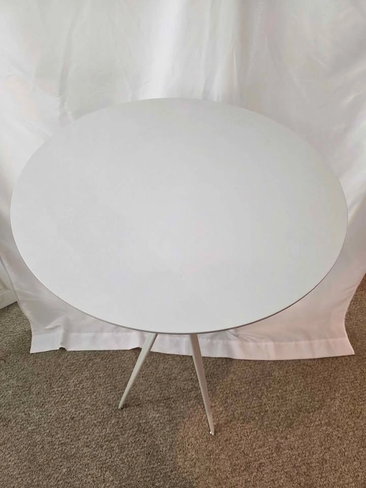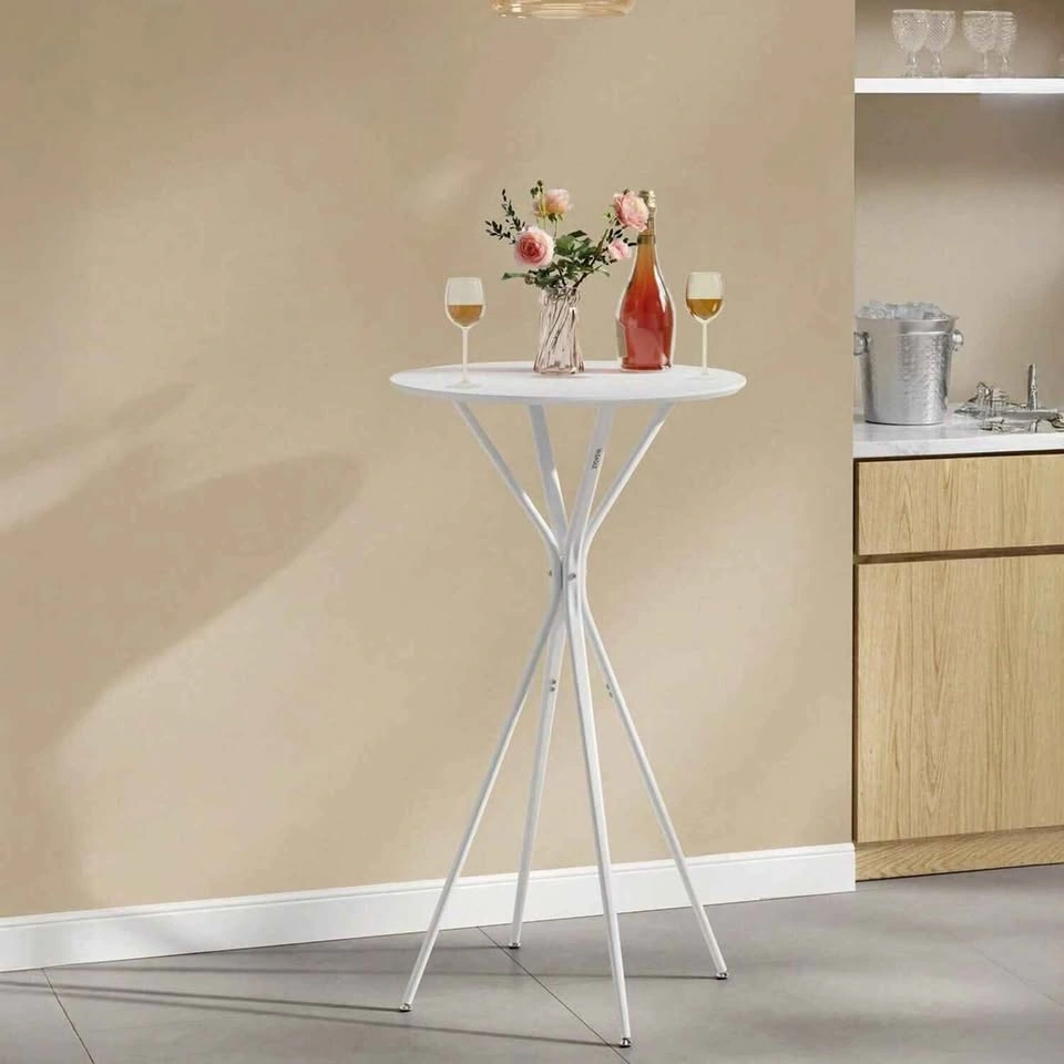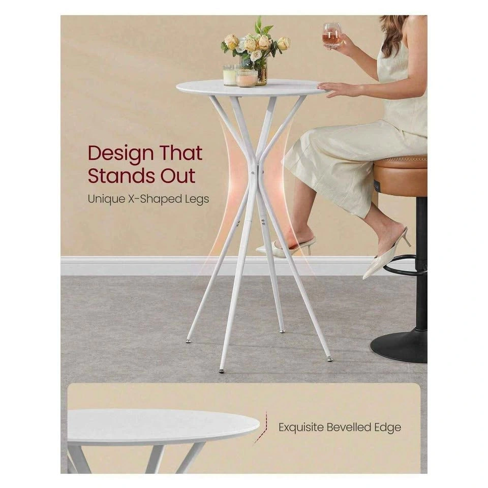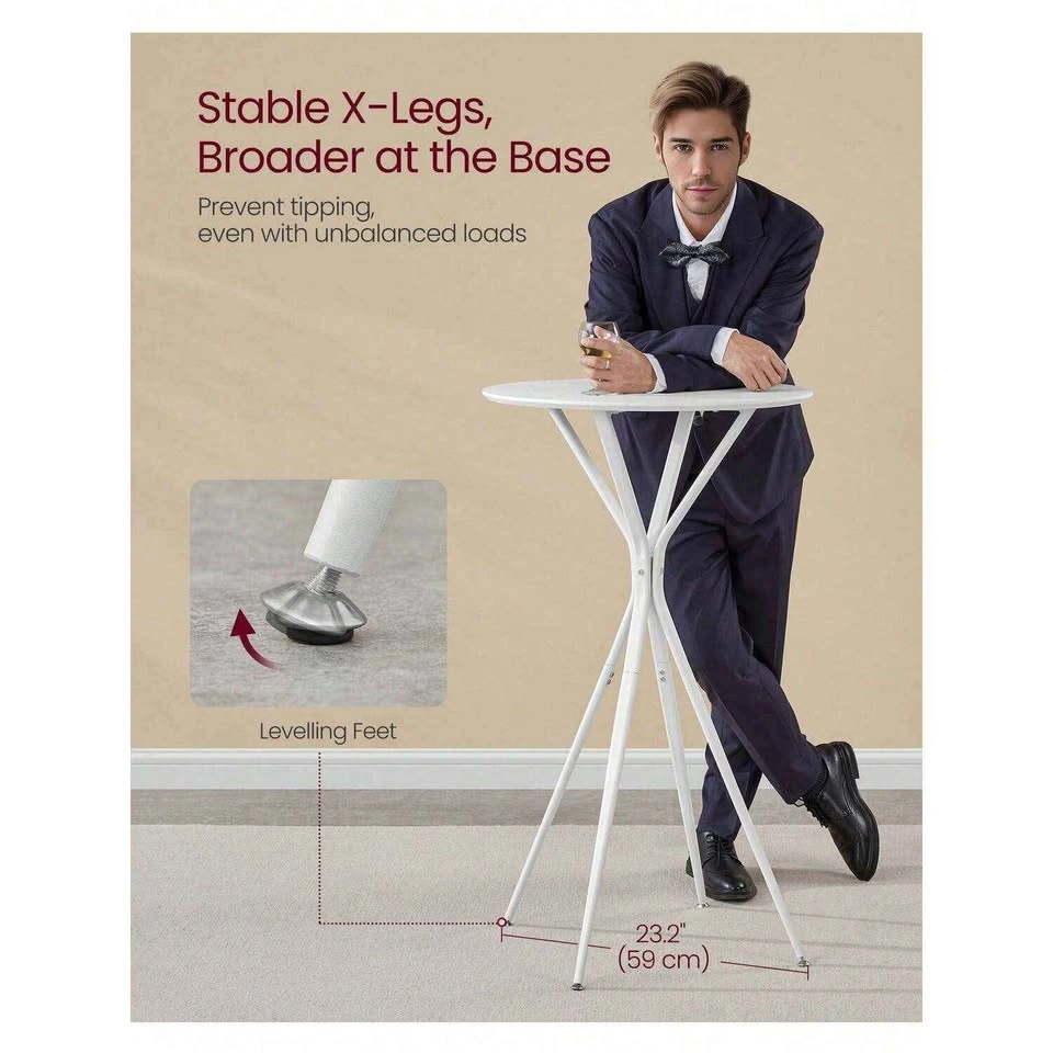 Stylish round cocktail table with a sleek X-shaped metal frame for extra stability. Perfect for events, bars, patios, or modern kitchens. Durable surface, holds up to 110 lbs (50 kg). Brand new, pulled from a liquidation pallet.
