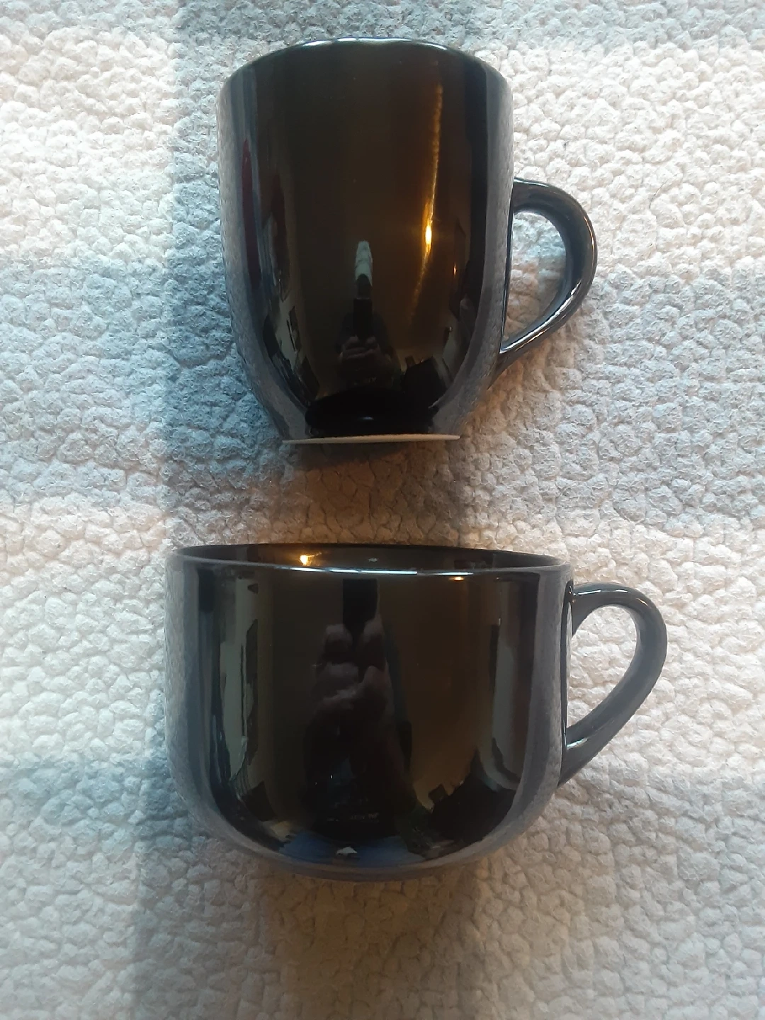 Selling a collection of 5 mugs in black and red. They're in great condition and ready for a new home!