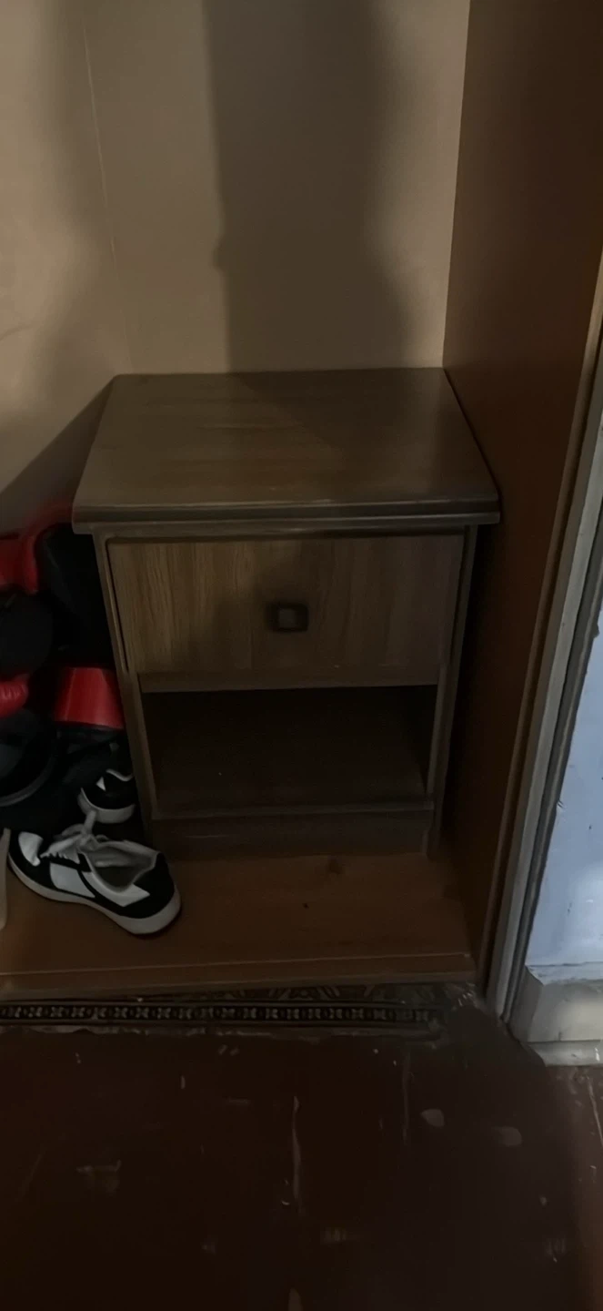 Selling a wooden nightstand in brown colour! It has a drawer and an open shelf below, perfect for bedside storage. It's in great condition and ready for a new home