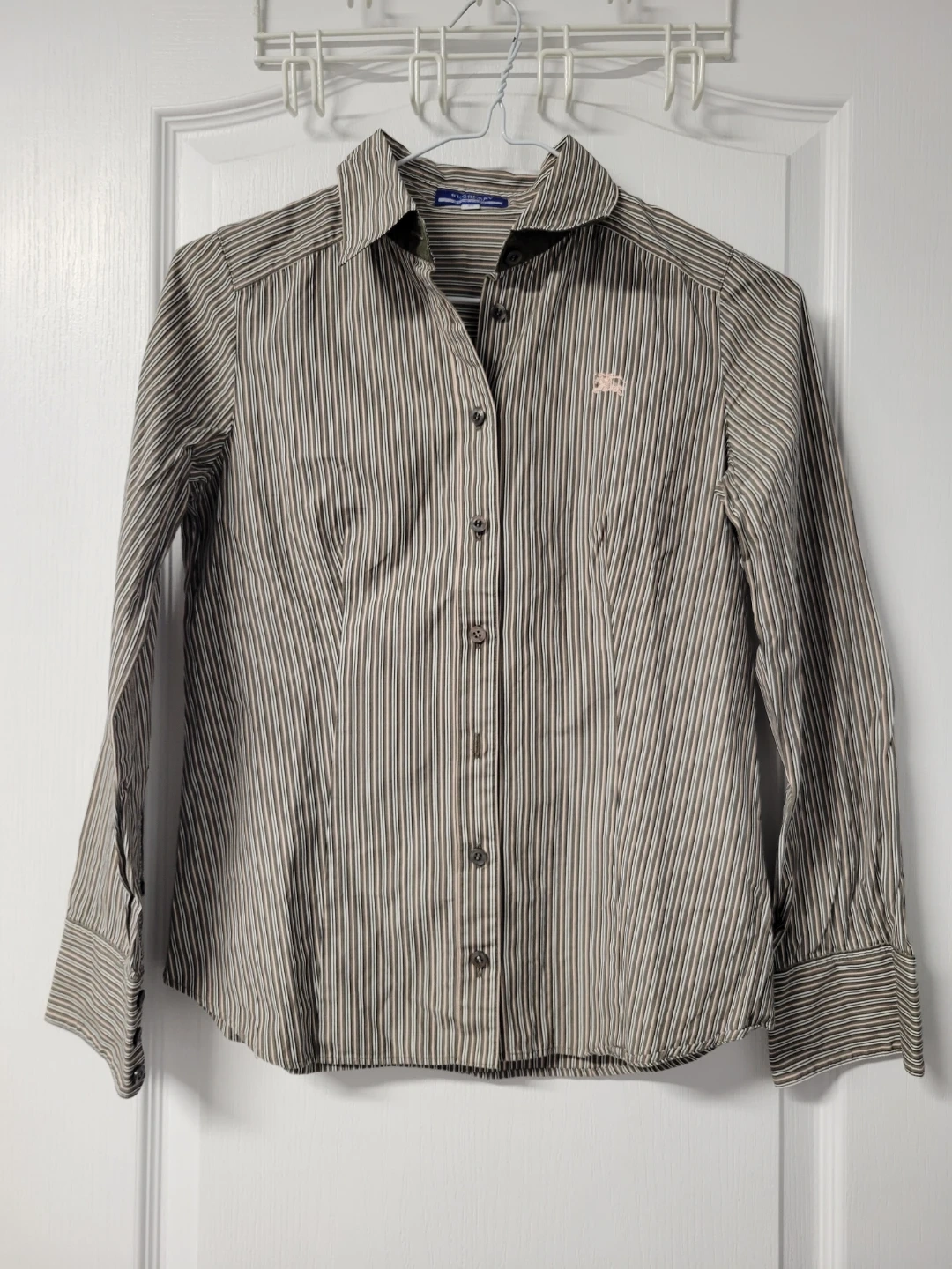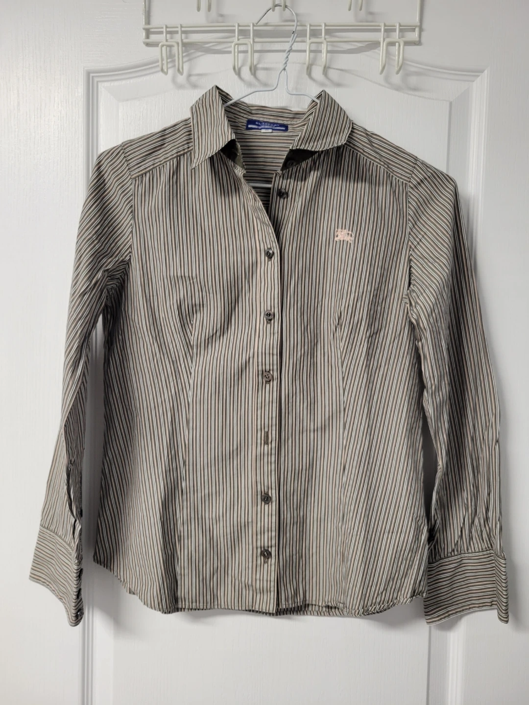 Selling a Burberry Blue Label button-up shirt! It features a stylish striped pattern and the iconic Burberry logo. The size is 38.