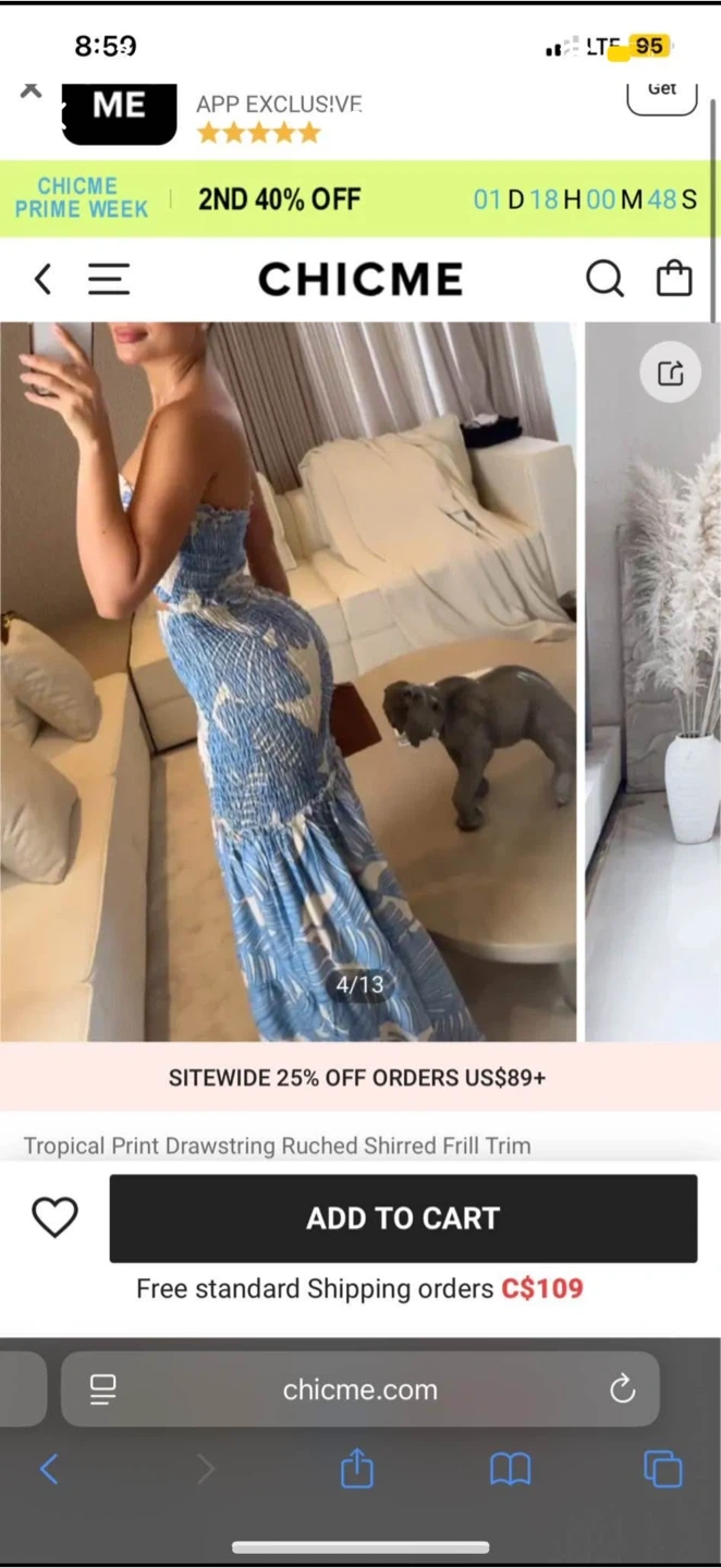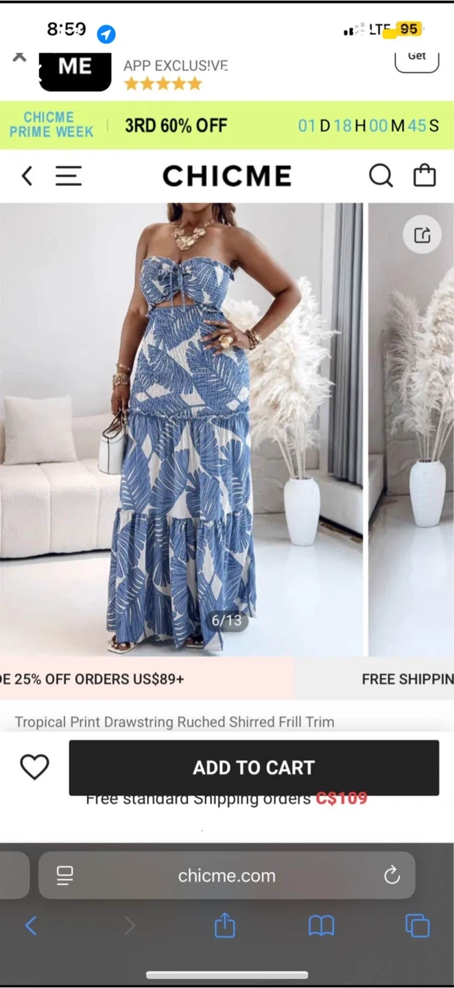 This is a Chic Me dress with a tropical print. It features a drawstring, ruched detailing, and frill trim.