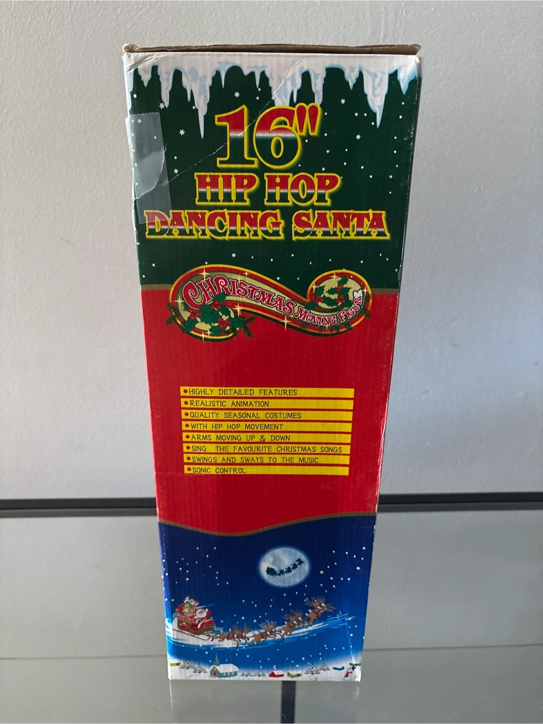 Get ready to groove with this 16-inch Hip Hop Dancing Santa! This Christmas novelty figure features highly detailed features and realistic animation. Watch Santa swing and sway to your favourite Christmas songs!