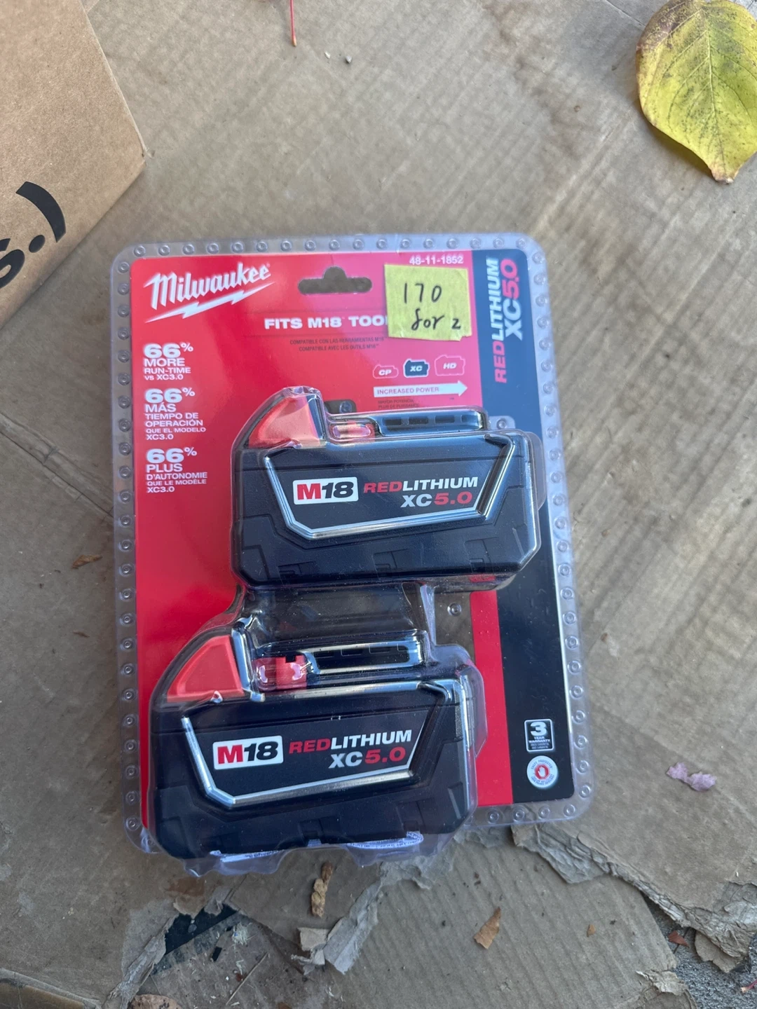 543Selling a brand new Milwaukee M18 REDLITHIUM XC5.0 battery pack! It fits M18 tools and provides great performance for all demands. You'll get up to 2x more life, more power, and more run-time compared to standard lithium batteries. A great addition to your tool collection!