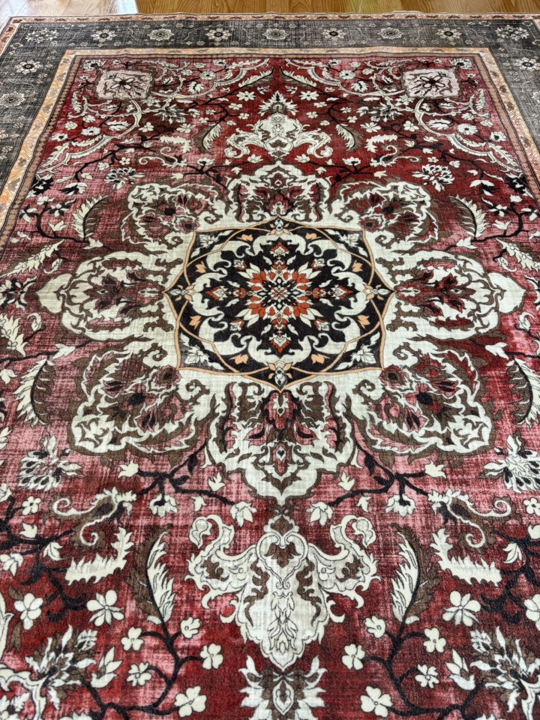 Brand new various size of red multi color area rug. It comes with soft surface and non slip backing. Low pile, machine washable. It’s easy to clean and maintain. Pick up in NW. Smoke and pet free home.