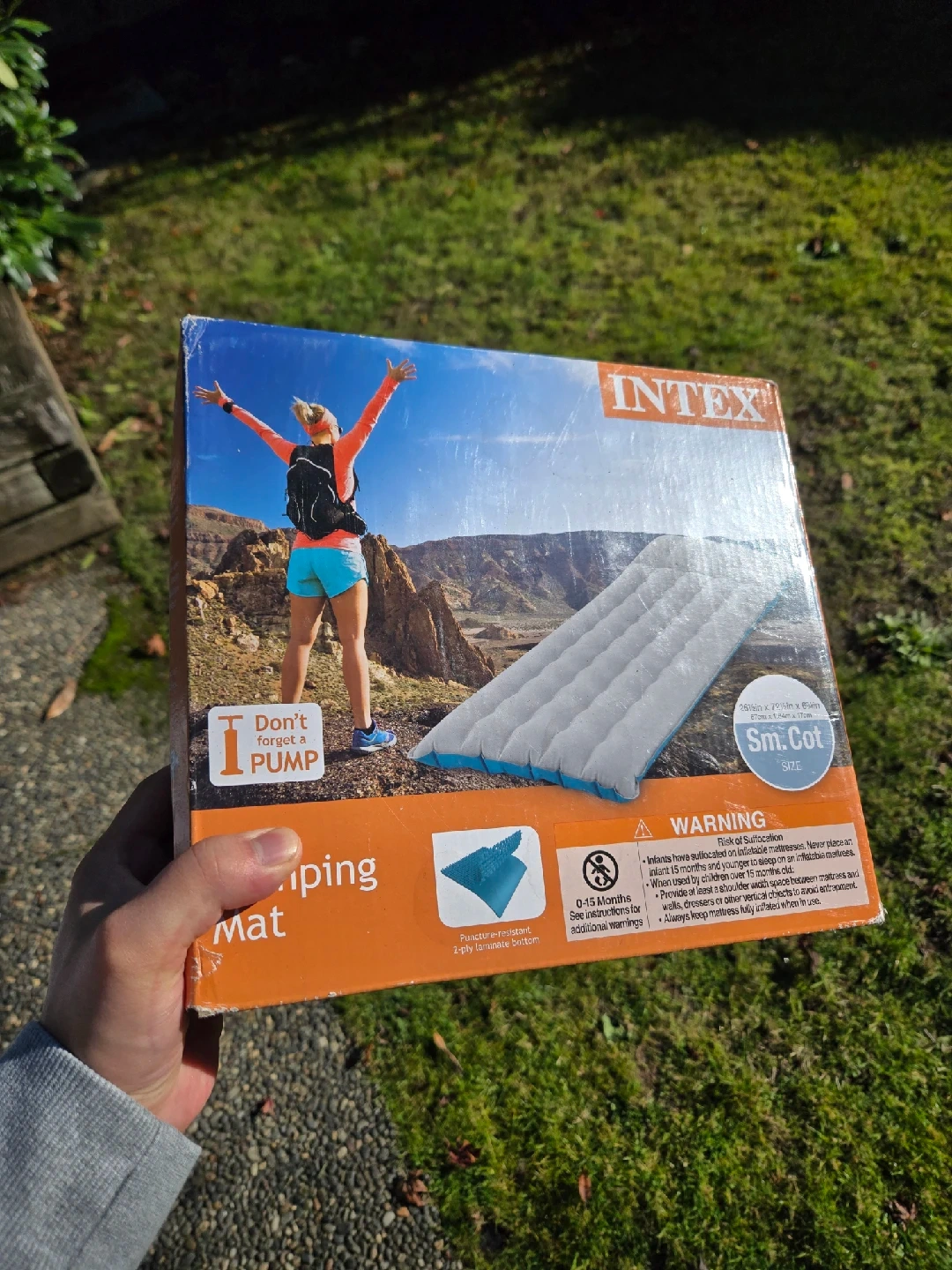 Intex camping mat, suitable for any outdoor condition. It's a small cot size bed, making camping comfortable and easy! Designed with a unique wave beam construction, the soft fabric top and laminate bottom will ensure a great night's sleep on the go.
