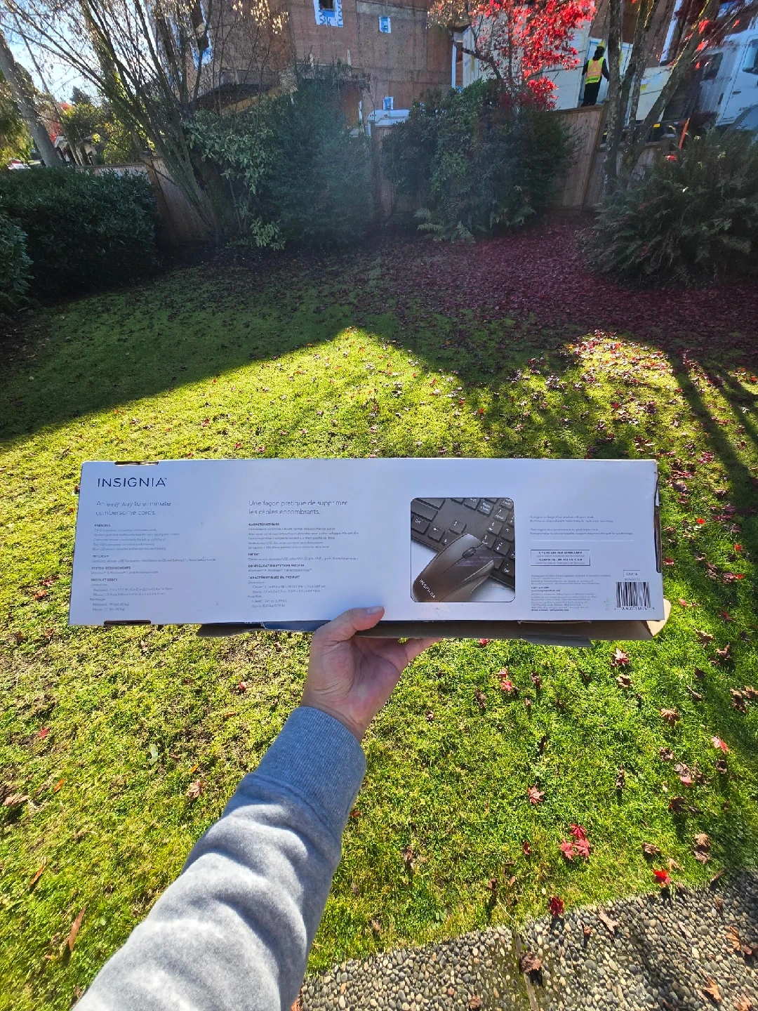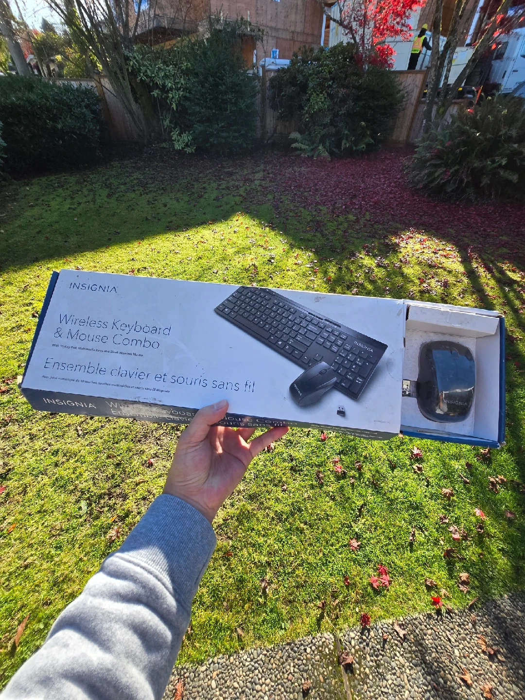 Selling a brand new Insignia wireless keyboard and mouse combo! It comes in its original box and includes both the keyboard and mouse. It's perfect for anyone looking for a reliable and convenient setup for their computer