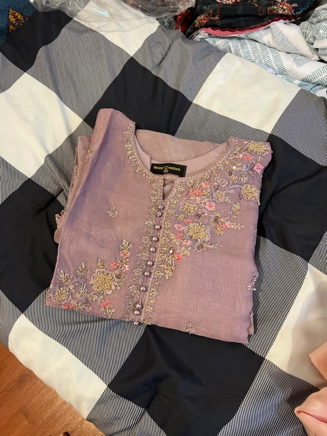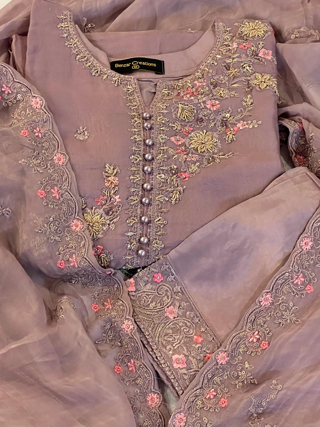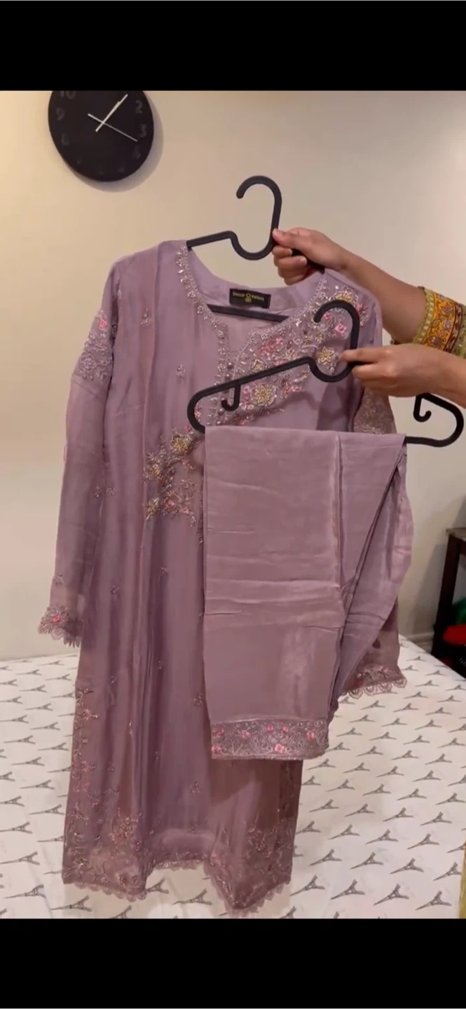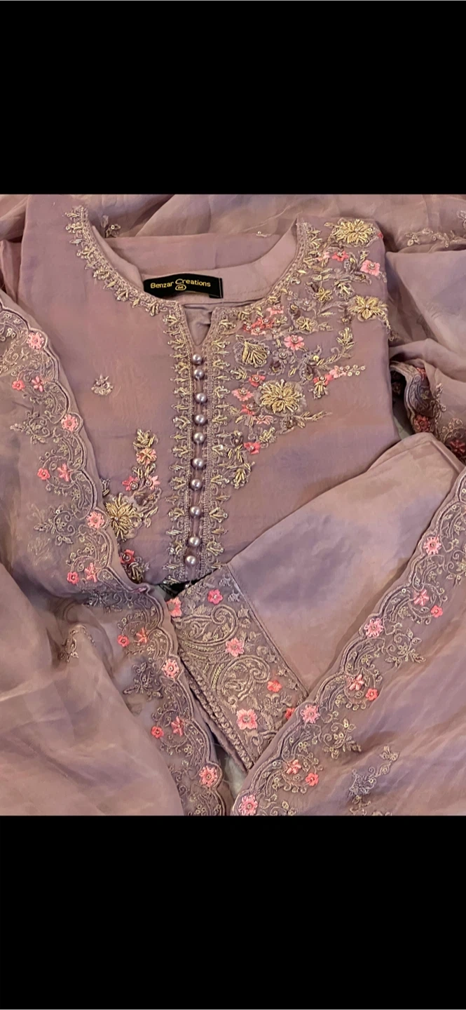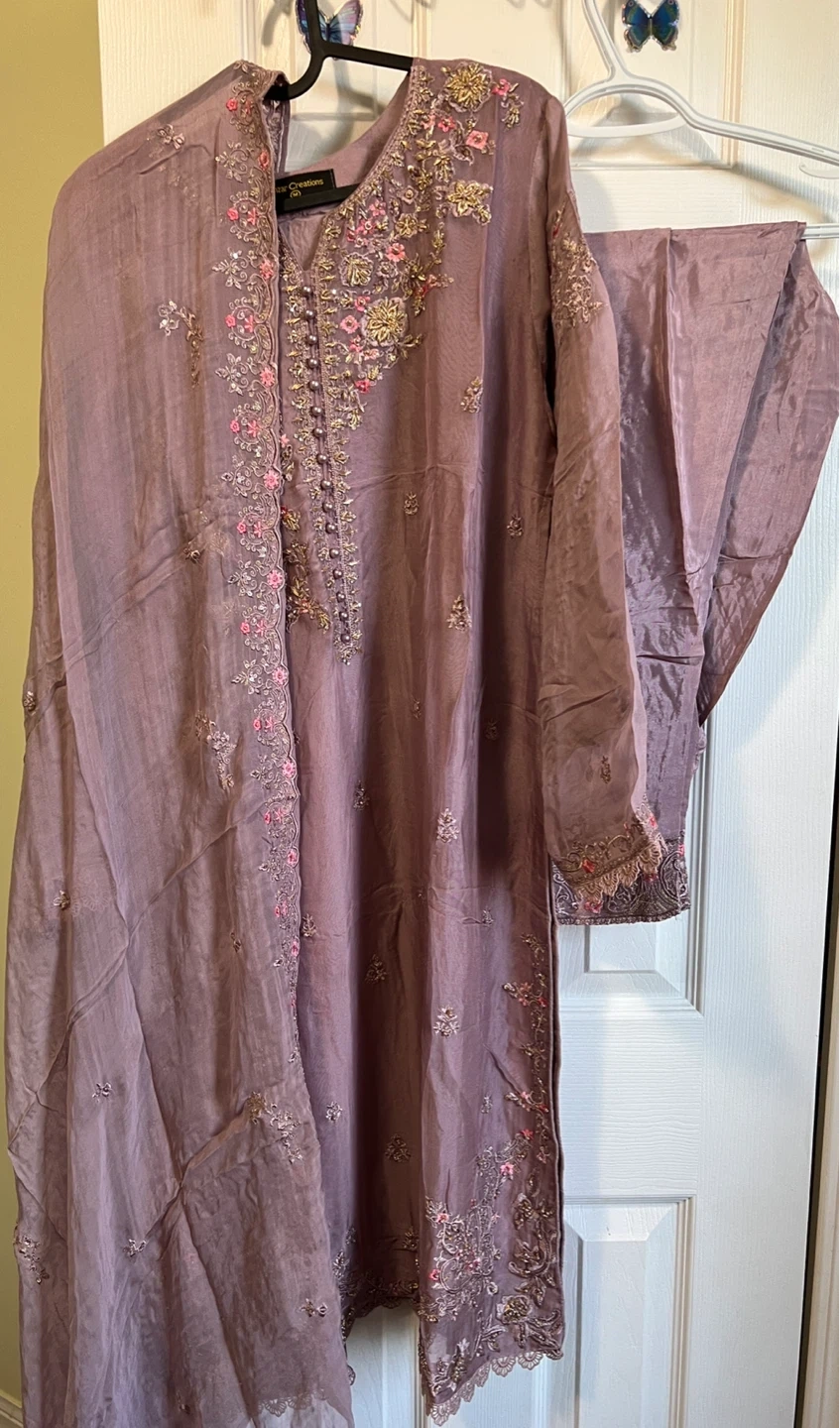 10Selling a beautiful chiffon Embroidered 3pcs Suit ! The suit is a lovely shade of mauve purple and features intricate floral embroidery. It includes the shirt, pants, and dupatta. Perfect for a special occasion or a stylish everyday look! Size: Medium Price:$90 Door pickup Available Shipment also available Check out other listings too