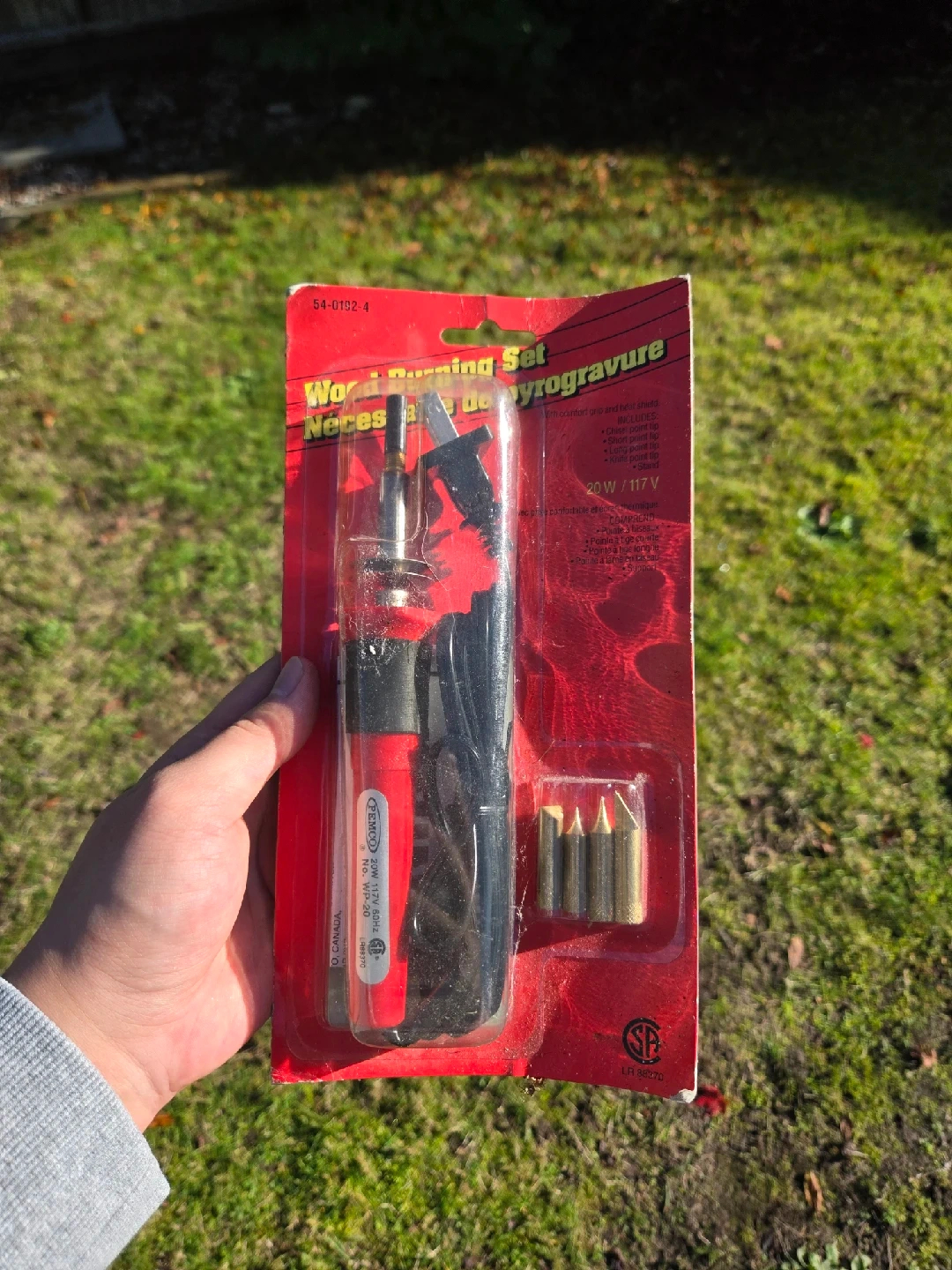 I'm selling a brand new wood burning set still in its original packaging! This set includes everything you need to get started with wood burning, also known as pyrogravure. Perfect for crafting and adding unique designs to wooden surfaces. The set is 20W / 117V. Let me know if you're interested!