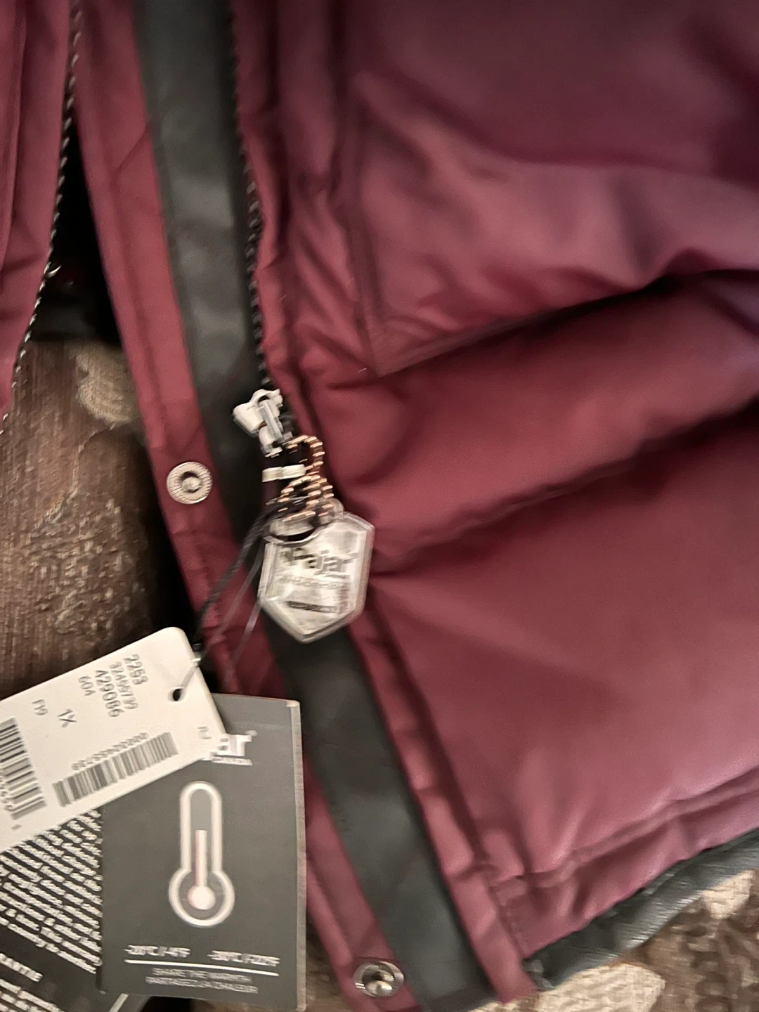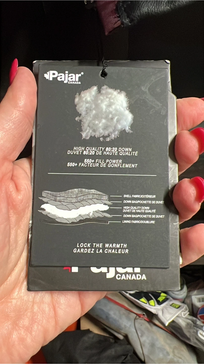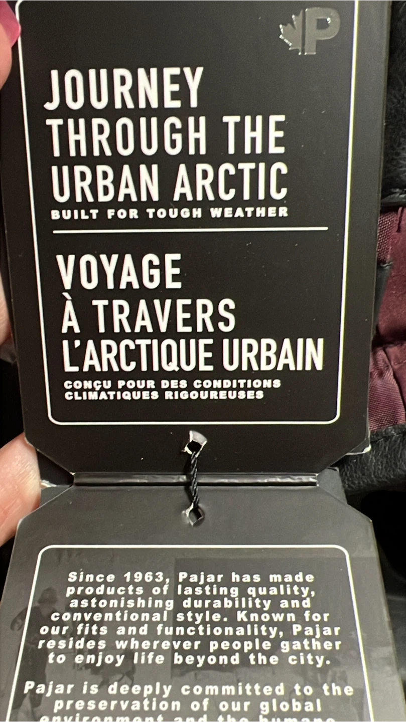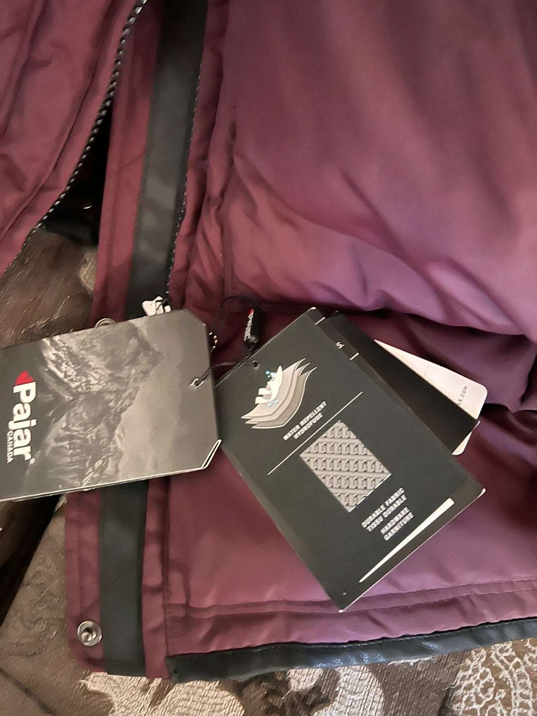 Selling a Pajar down bomber jacket in size 1X. It's a beautiful burgundy colour and features a fur-trimmed hood. It's water-repellent, windproof, durable and breathable, perfect for those cold Canadian winters!