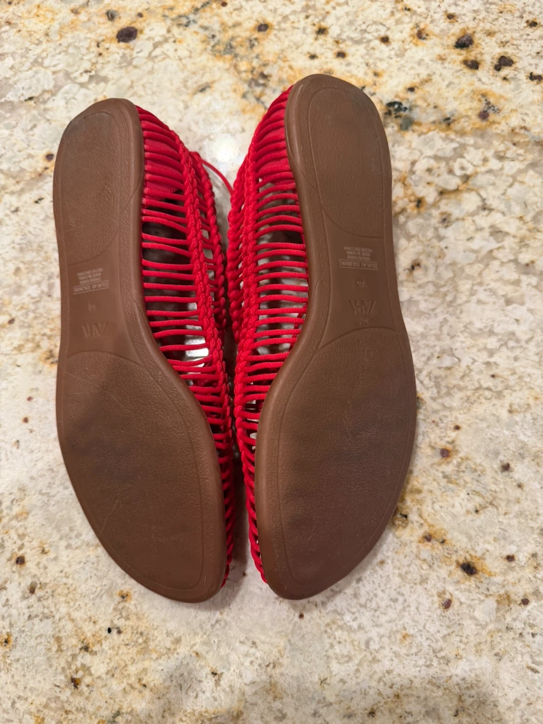 These cute Zara flats are perfect for adding a pop of colour to your outfit! They feature a unique woven design and are super comfy. Size 7.
