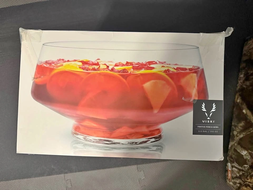 65Brand new very large glass bowl can be used for punch or desserts. It is brand new, never been opened, and enclosed in Styrofoam for protection.