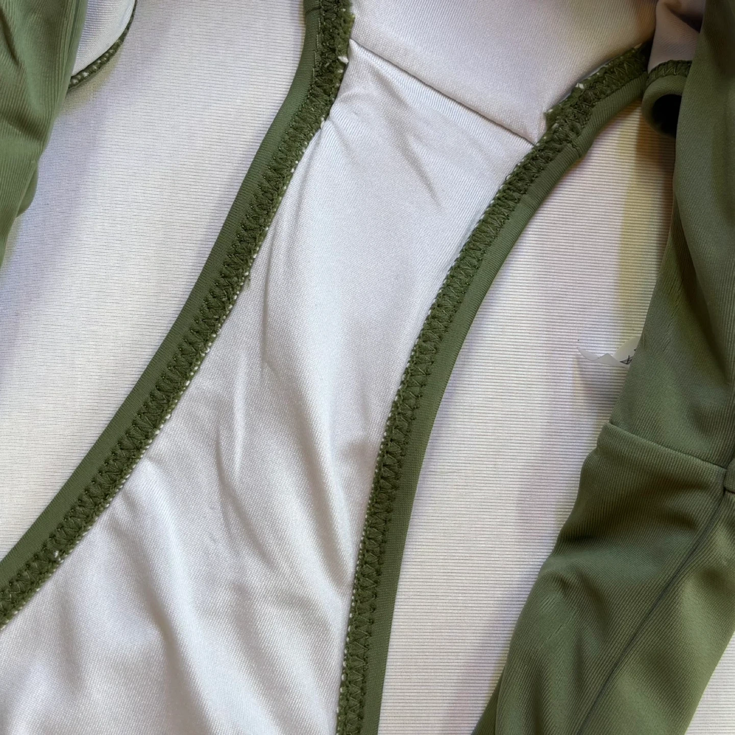 These Yacun olive green bikini bottoms offer a flattering fit with their high-rise design and high-cut leg openings, providing both style and comfort for your swimwear collection. These bottoms are in new unworn condition.