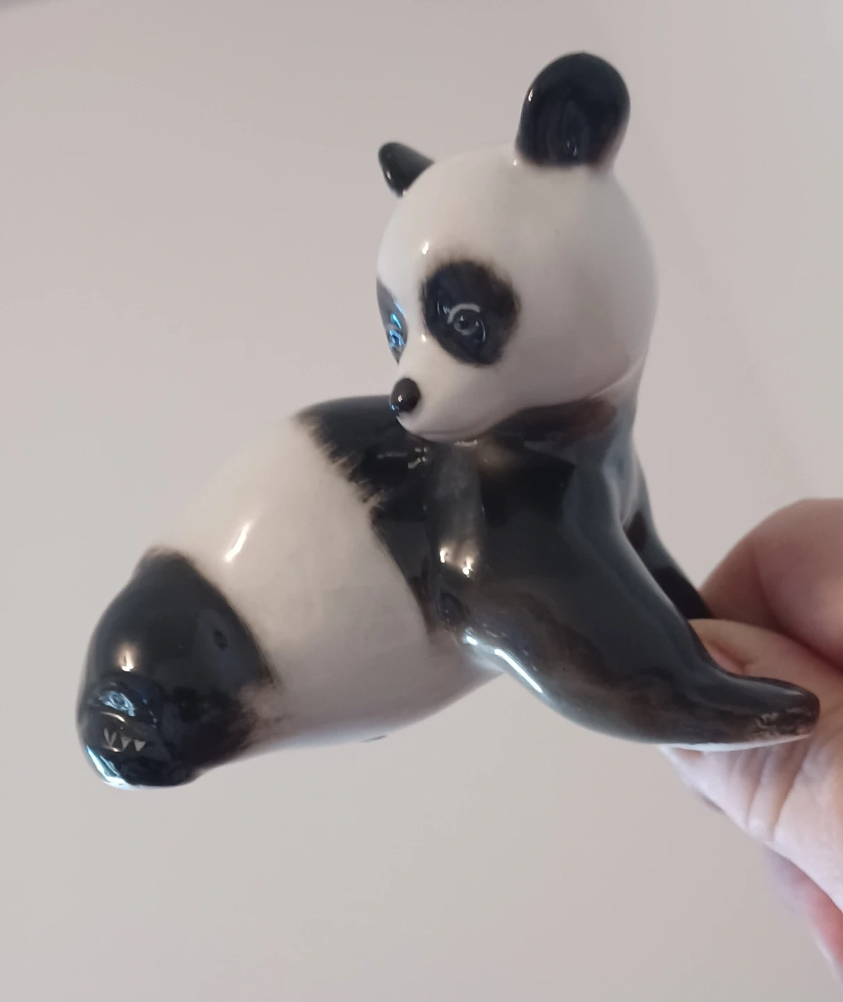 Vintage 1960-70's USSR Panda. Part of the zoo series by Lomonosov porcelain made in what is now St. Petersburg Russia. It was designed by Pavel Veselov with decor by Victor Zhbanov. Excellent condition.
