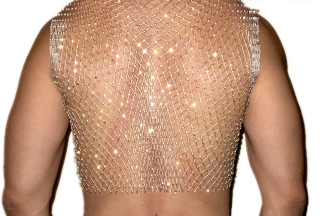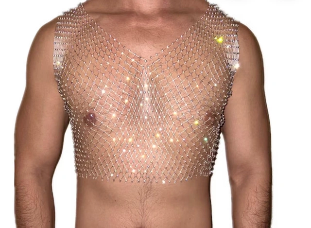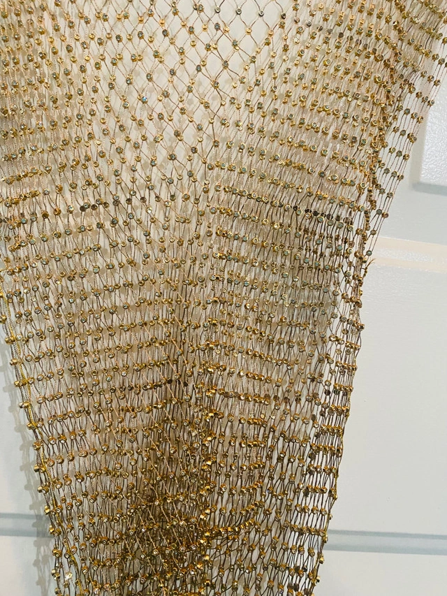 118Brand new Gold Bling Rhinestone Crystal Mesh Crop Top, See Through Fishnet Unisex Design Retail price $60 CAN Condition: New For Sale By: Owner Payment: Cash accepted, Cashless payment