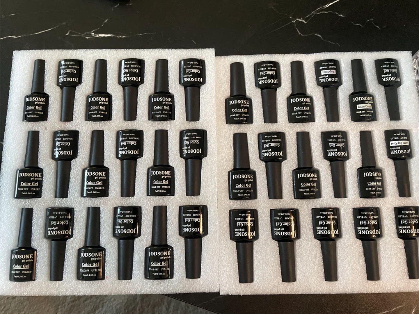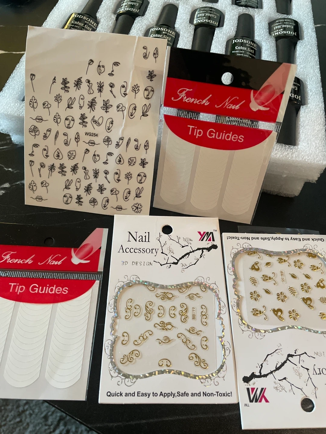 85Selling a brand new Jodsone SUNX5 Max Nail Lamp along with a 32+3 Gel Nail Kit! The kit includes various nail accessories like French nail tip guides and 3D nail art stickers. The manufacturing date is May 19, 2023, and the expiry date is May 19, 2028.