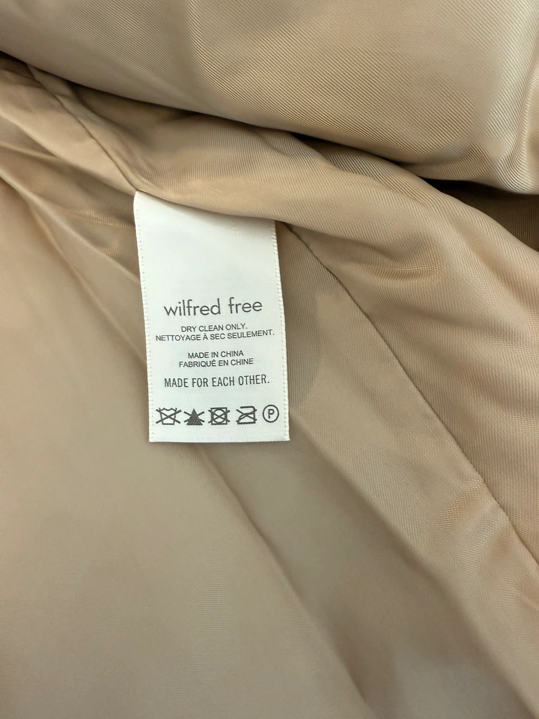 Selling a Wilfred Free Toro blazer in a size medium! The blazer is made of 73% wool and 27% polyester for the body, and the lining is 100% cupro. It's a stylish and cozy piece for layering