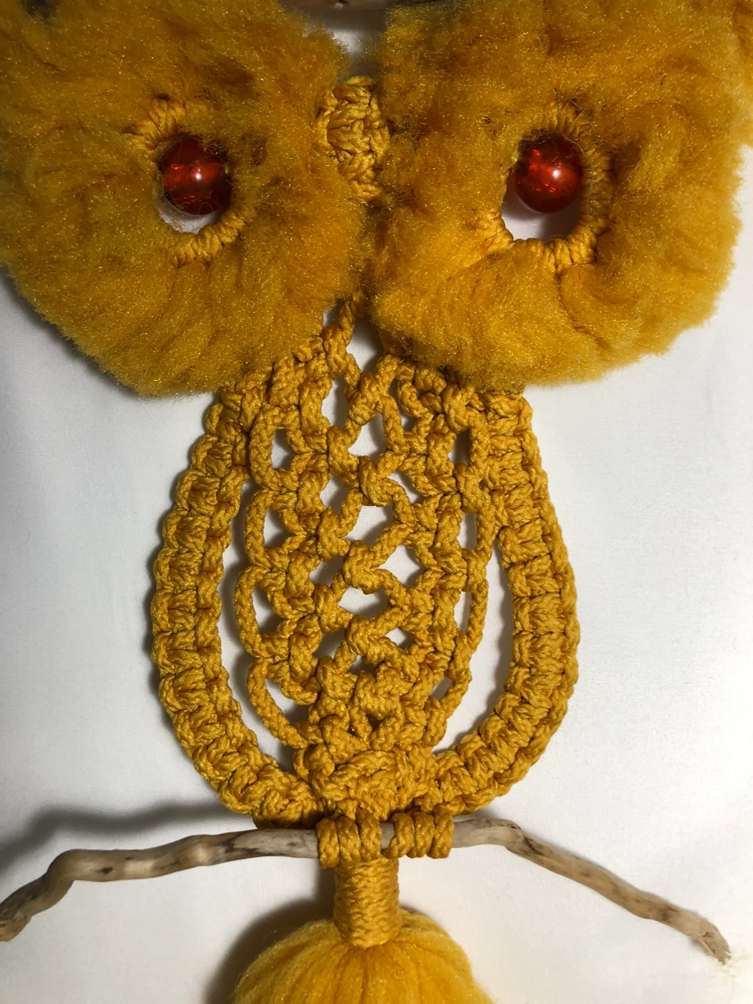 Vintage Gold Macrame Owl. 11” wide 32” long Good condition $60 Cash or e-transfer Coliseum Area / Elmwood Park Shipping extra