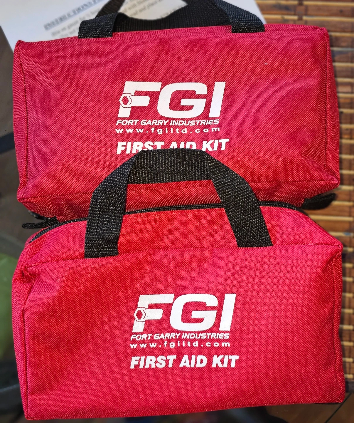Selling 2 red First Aid starter kits from FGI Fort Garry Industries.