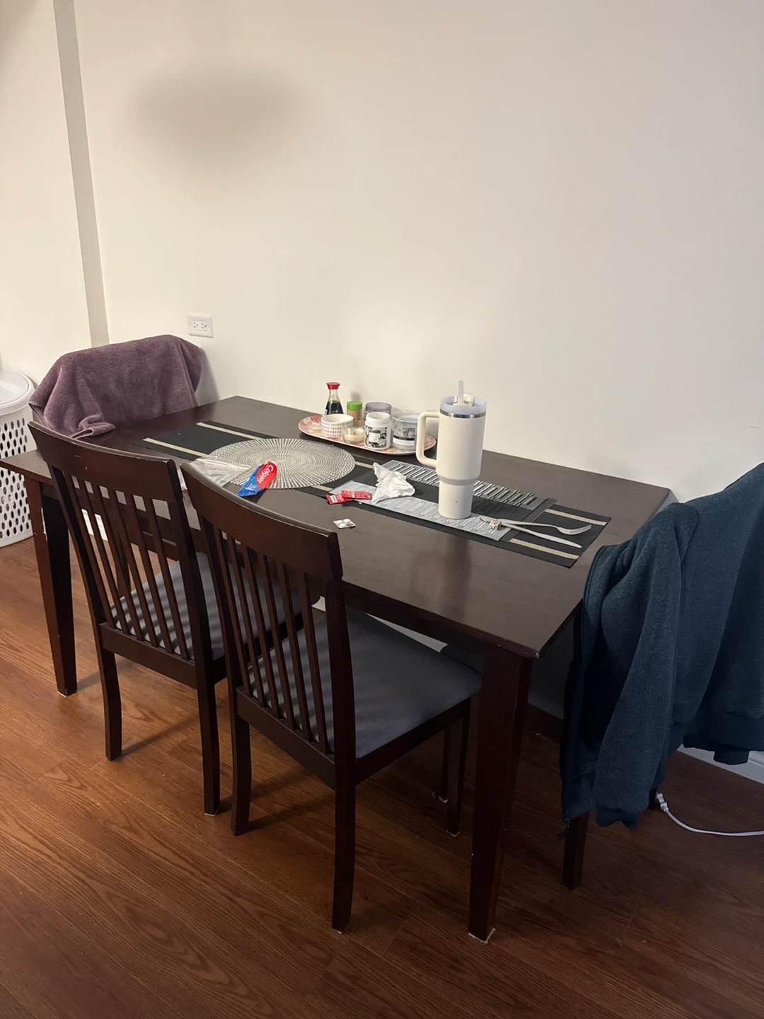 Selling a dining table with 4 chairs. It's in good condition and perfect for a small space or apartment