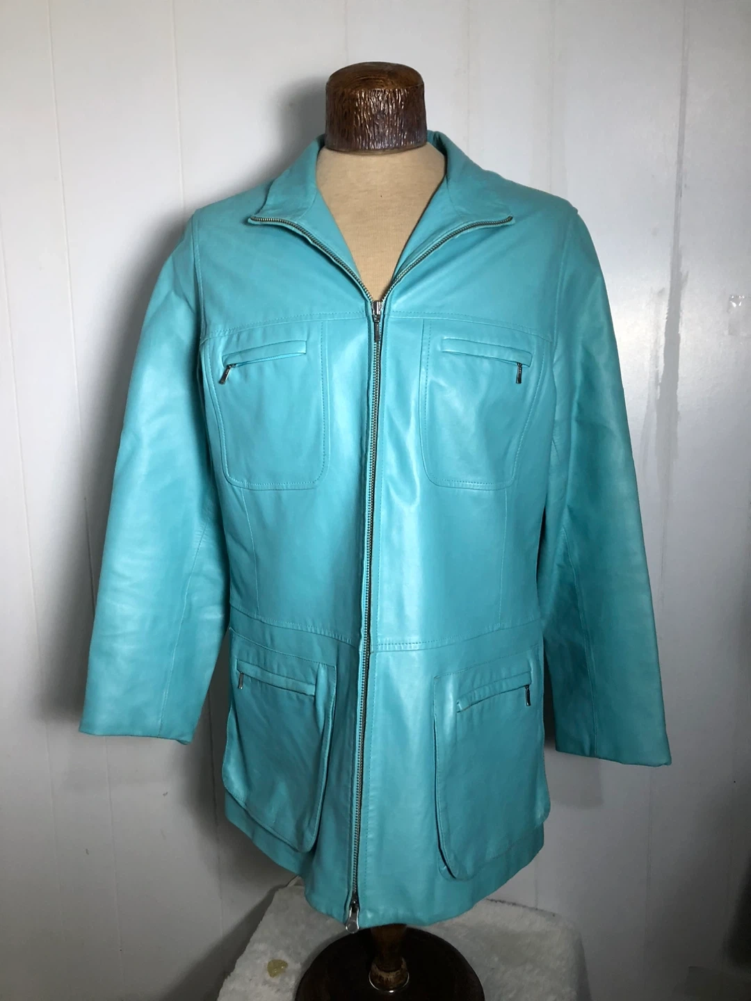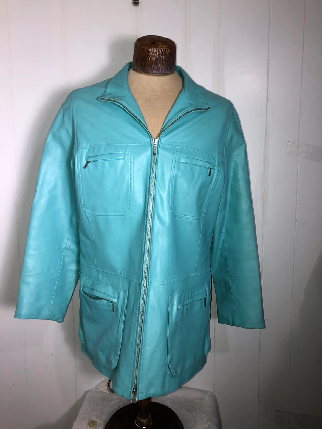 Women’s Teal Genuine Leather Jacket. Danier. Size Large.