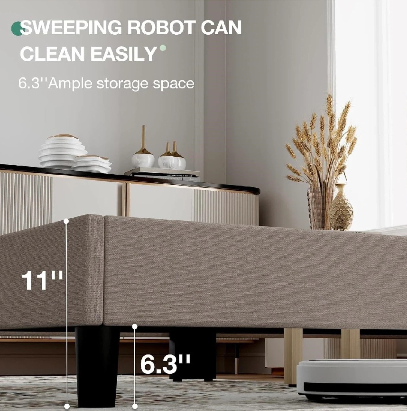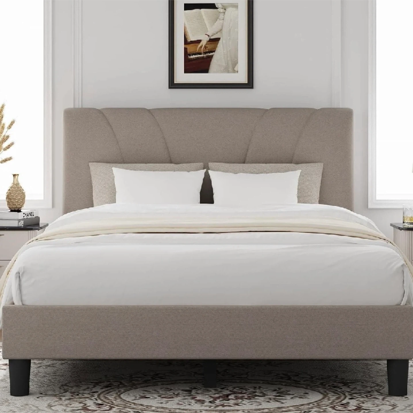 * Material: Linen Upholstery, Wood Frame