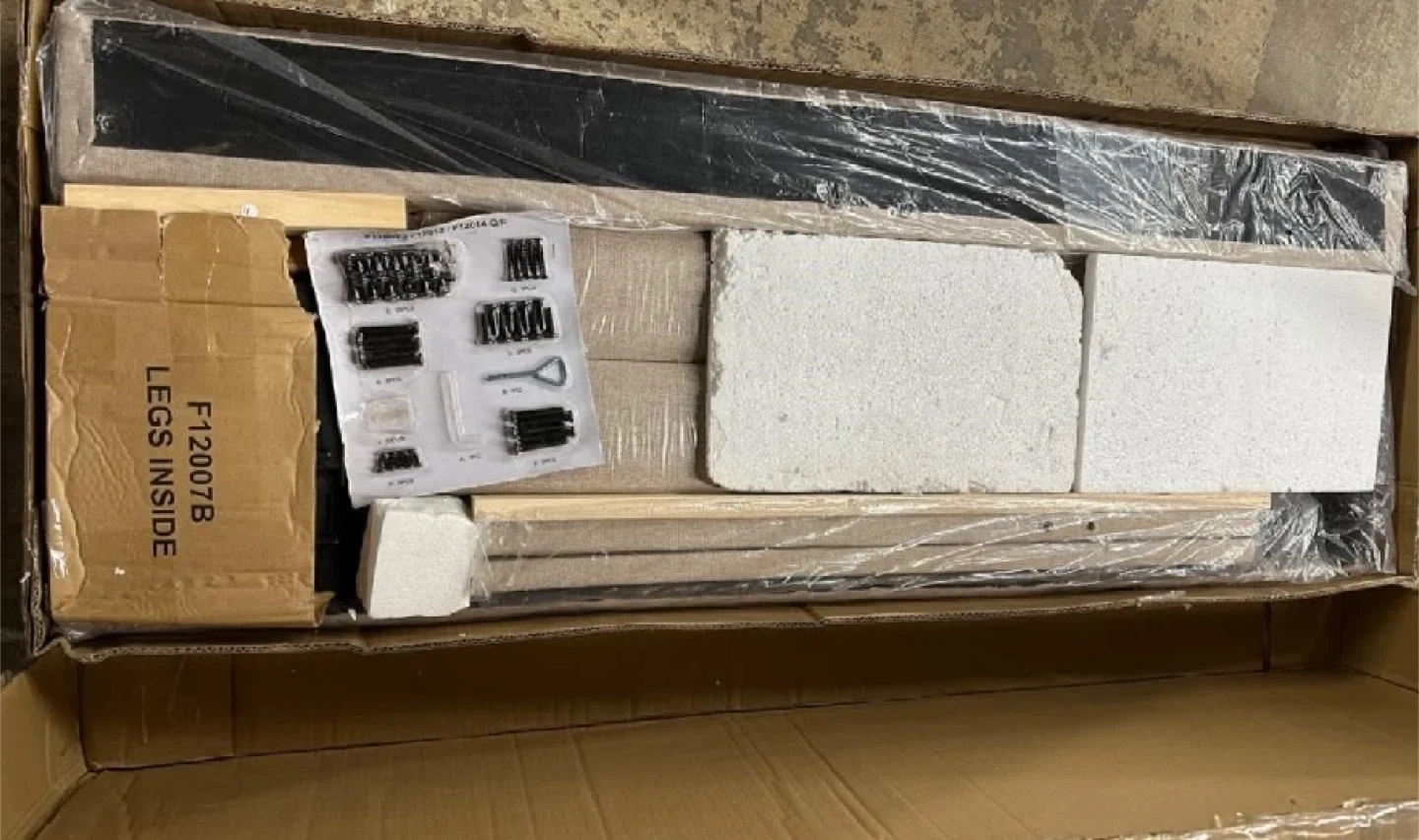 This brand new Novilla full bed frame features a stylish, modern design with a linen-upholstered headboard, offering both comfort and elegance to your bedroom. The frame is sturdy, easy to assemble, and provides excellent support for a restful night's sleep.