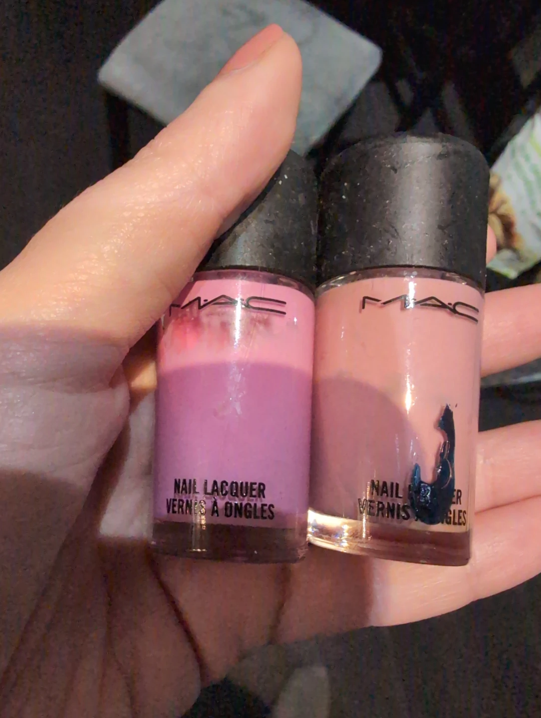 Selling a duo of MAC nail lacquers! One is a pretty light pink shade, and the other is a nude shade. Both bottles are 10mL/0.34 US fl oz
