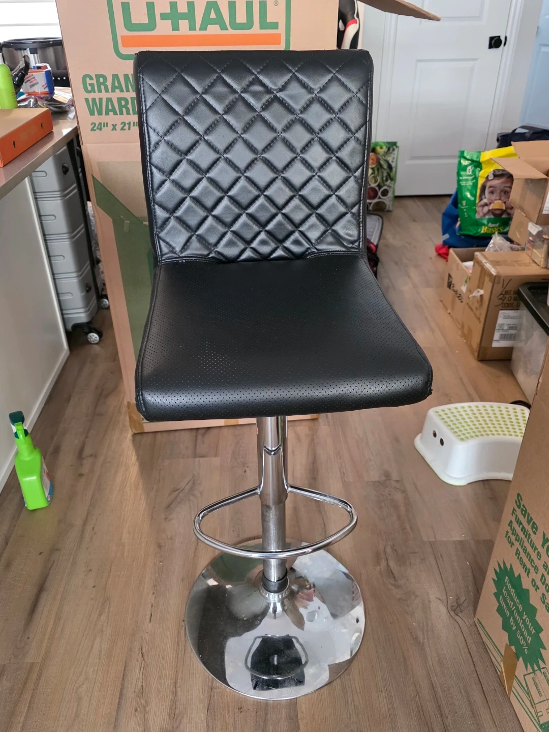Selling a black bar stool in good condition. It features a quilted pattern on the backrest and a chrome base. Perfect for your kitchen island or bar area!