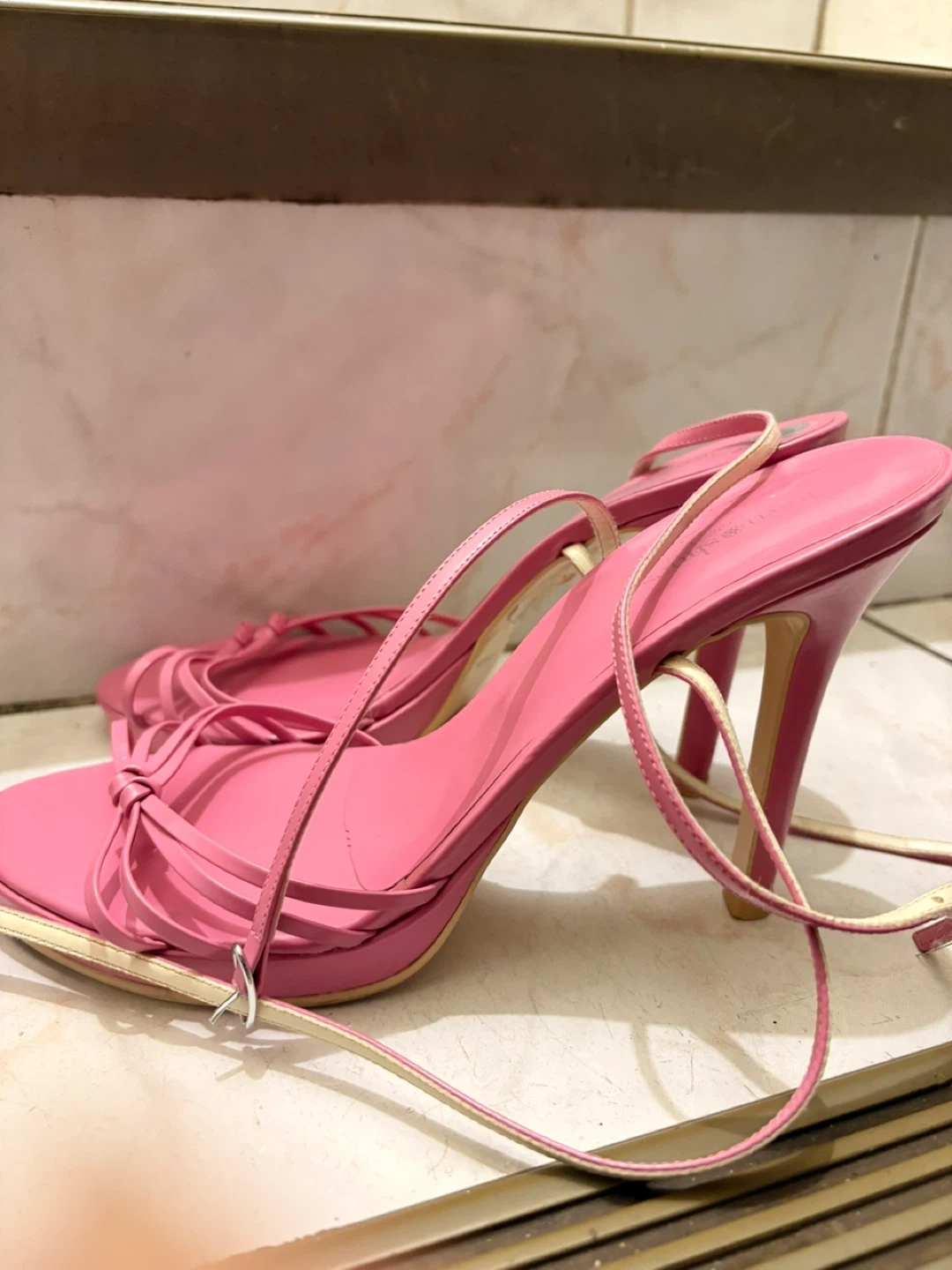 Selling a pair of cute pink heels in size 9! They're perfect for a night out or a special occasion. The strappy design is super stylish and adds a touch of elegance to any outfit
