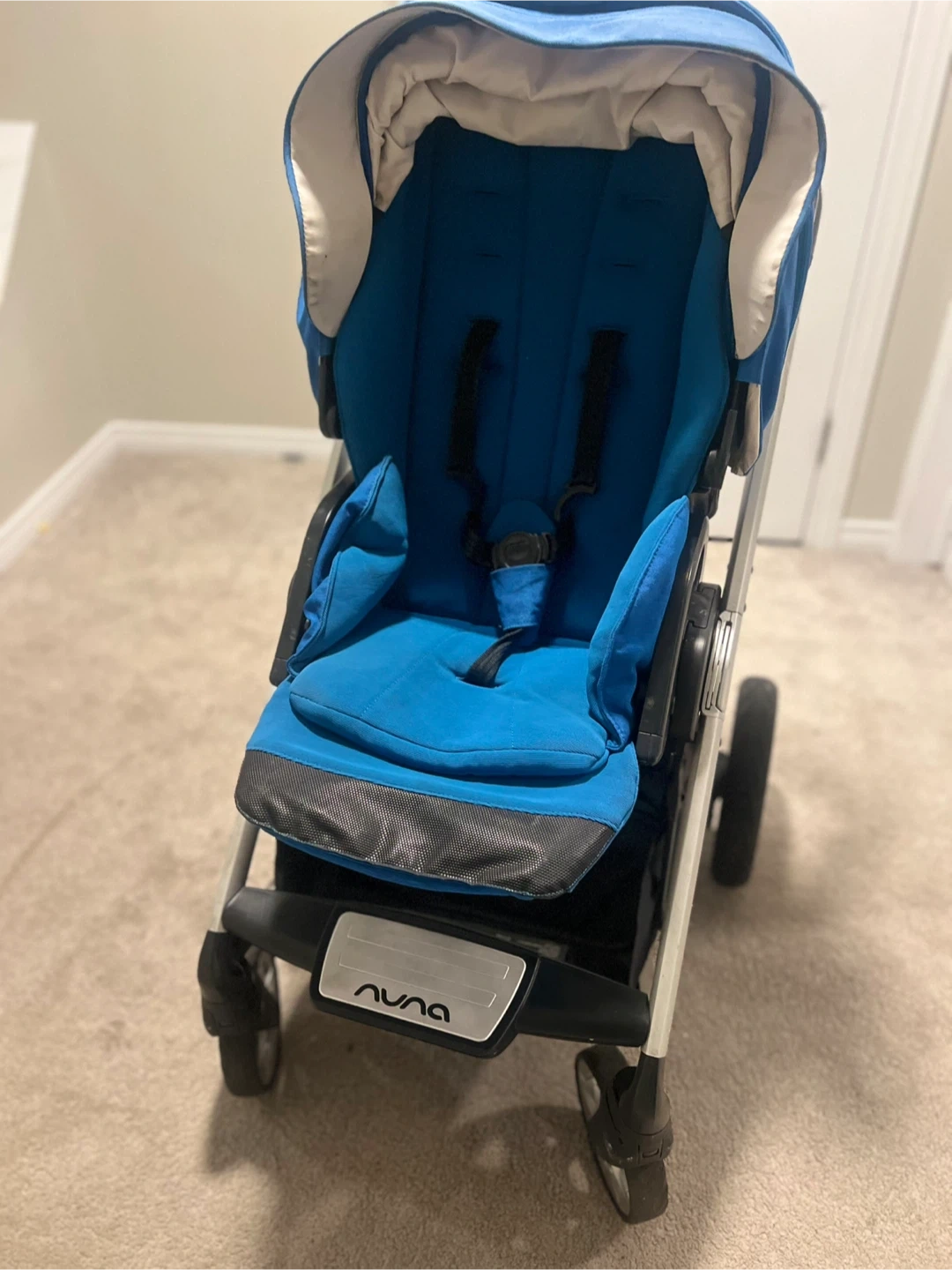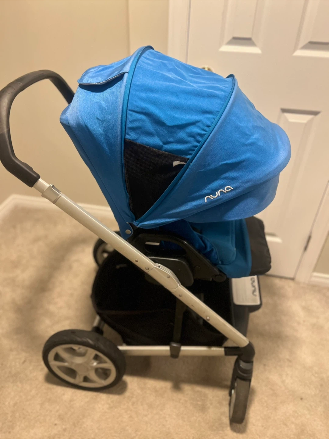 Selling a Nuna Mixx stroller in blue! It's in great condition and ready for a new family. Perfect for walks around the neighbourhood or trips to the park. It's a reliable and stylish stroller!