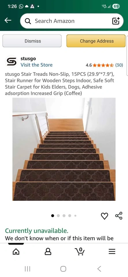 Brand New stusgo Stair Treads Non-Slip, 15PCS (29.9"*7.9"), Stair Runner for Wooden Steps Indoor, Safe Soft Stair Carpet for Kids Elders, Dogs, Adhesive adsorption Increased Grip (Coffee)