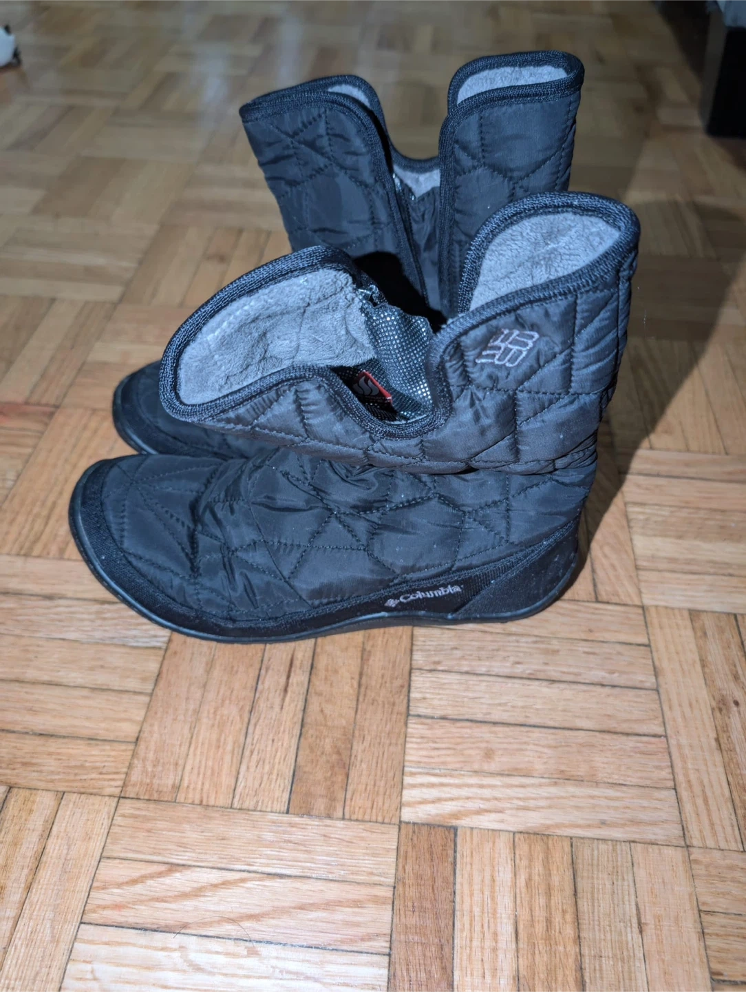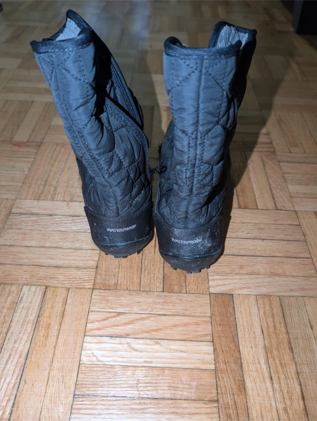 Selling a pair of Columbia women's winter boots in size 6.5. They are black and waterproof. The boots show some signs of wear but are still in good condition for keeping your feet warm and dry this winter season!