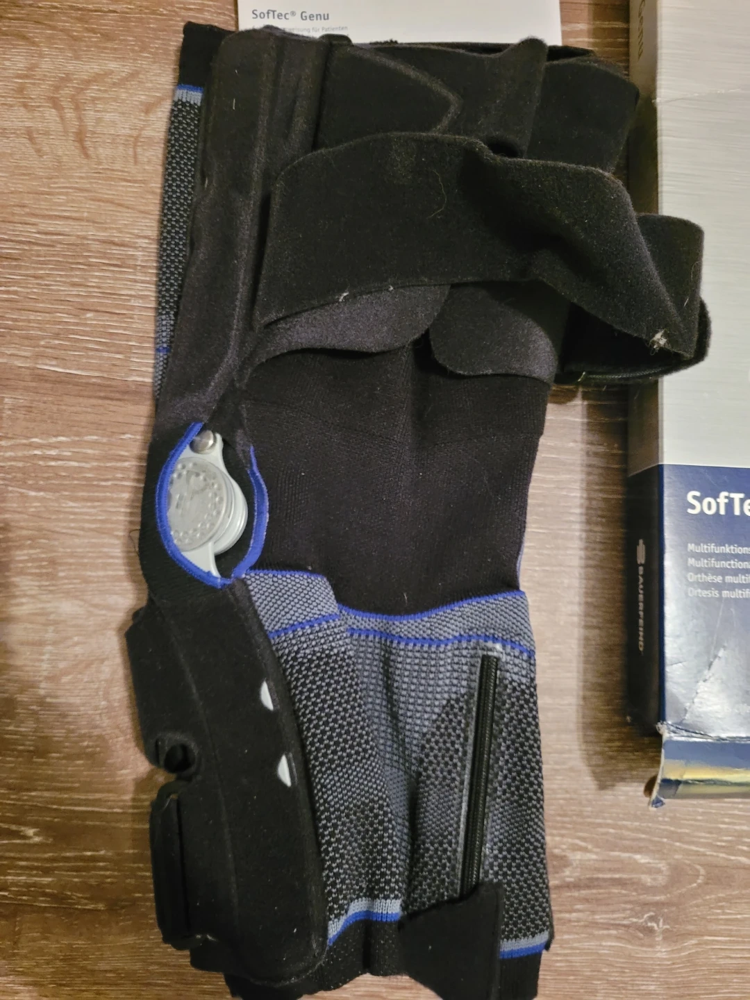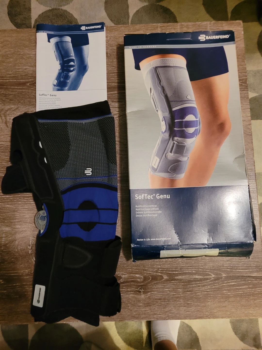124Selling a Bauerfeind SofTec Genu knee brace! It comes with the original box and instructions. This brace is designed to provide support and stability for the knee joint. It's in good condition and ready to help someone in need of extra support. Feel free to message me with any questions!
