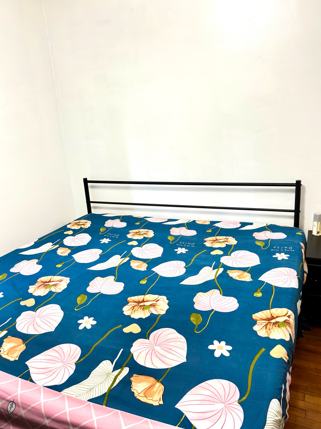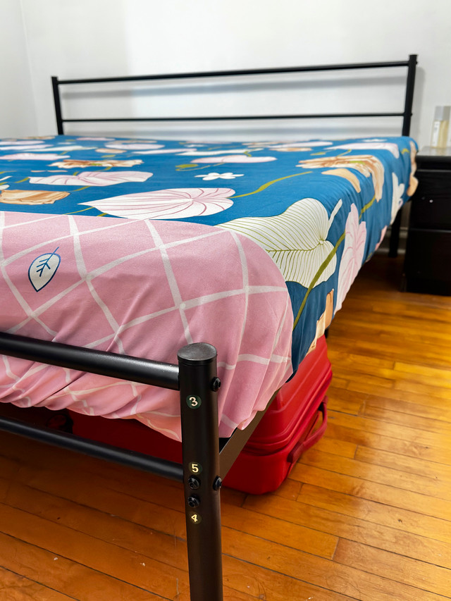 We’re moving to a new place and this is too big for the room hence selling this metal bed frame. Anyone, who’s thinking of a king size bed either for personal use or guest room..can’t go wrong with this solid metal frame. We have kept it well.
