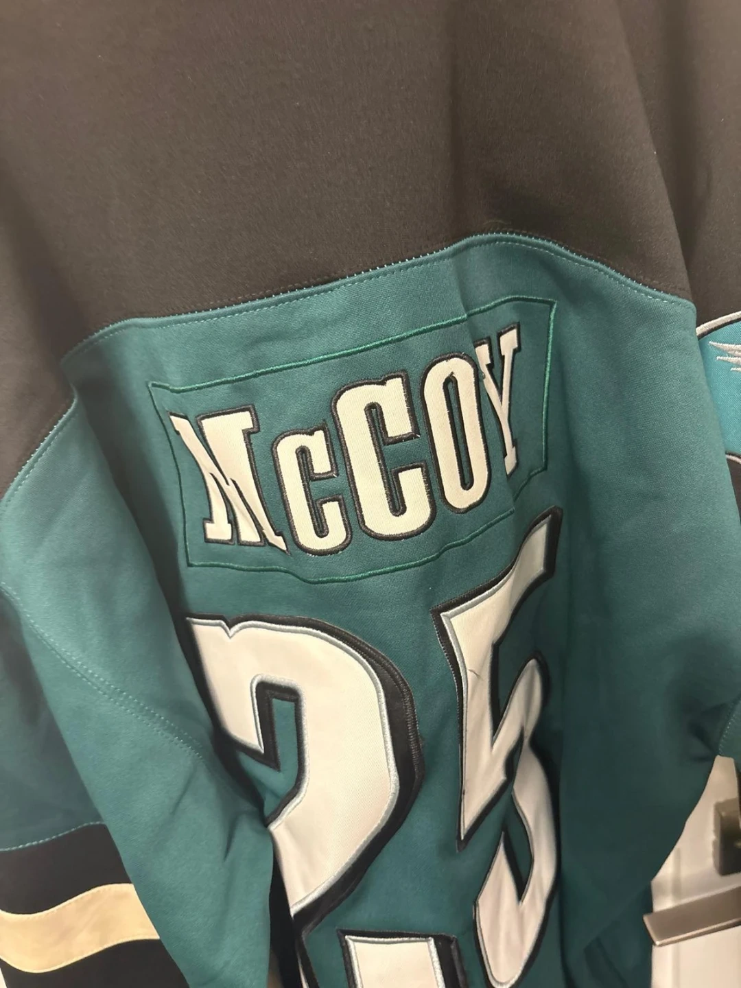 Selling a Philadelphia Eagles hockey jersey with McCoy's name and number 25 on the back! It's in great condition except for the last slide.