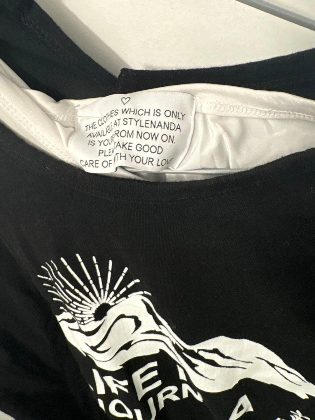 631Selling a Stylenanda long sleeve top in black! The tag says: 'The clothes which is only available at Stylenanda is yours from now on. Please take good care of your love'.