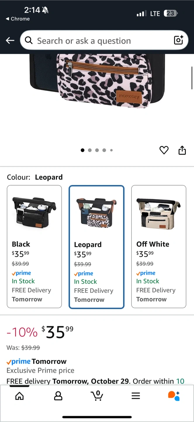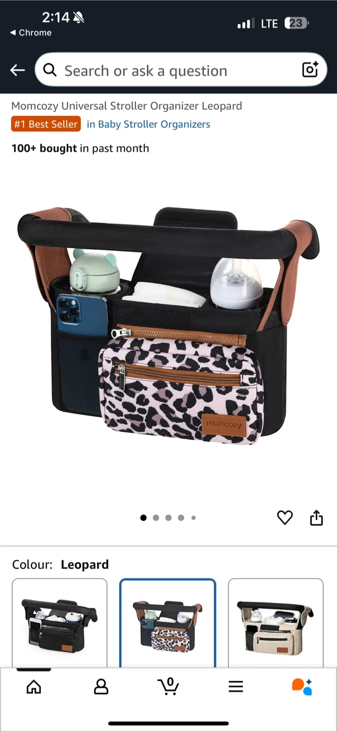 Keep all your baby essentials organized with this Momcozy stroller organizer! It features a stylish leopard print and is perfect for keeping bottles, diapers, and other necessities within easy reach. Originally bought for $39.99.