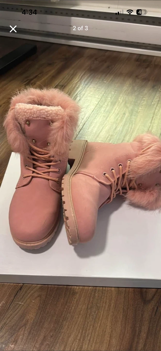 Cute pink winter boots with fur trim! They're in great condition and ready for the cold weather. The size is 37, which is about a women's size 7 in Canada/US. Perfect for adding a pop of colour to your winter wardrobe